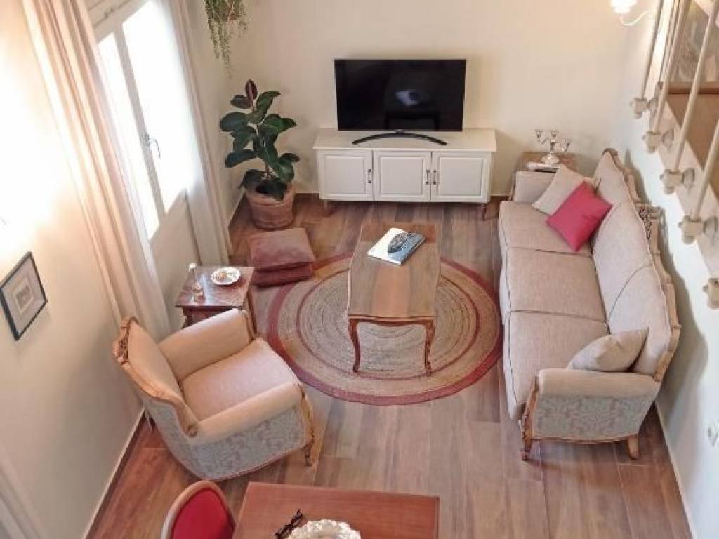 Unique renovated apartment of 53 sq.m. fully furnished and equipped low in Panagia with balcony. It consists of two bedrooms, living room and kitchen and bathroom. It has air conditioning for heating. Due to the height difference, it is located on the ground floor on one side and on the first floor on the other. In excellent condition. Available until 31/06/2026. The energy performance certificate is under issuance. The information accompanying the advertisement is provided by the owner. The interested party must check its accuracy.