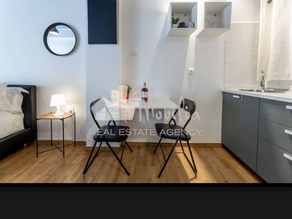 Apartment For rent, floor: Elevated Ground Floor, in Kallimarmaro. The Apartment is 27 sq.m.. It consists of: combined bedroom/ salon/ fully-equipped kitchen, and separate bathroom. Very high ceilings. Located in one of the nicest areas of the city, just behind the marble stadium. Safe and trendy area. Only available for long-term rental of at least a year, expenses (water, electricity) not included. The property was built in 1972 and it was renovated in 2020. Its heating is Not available, Air conditioning are also available, it has Aluminum frames with Double glazed windows, the energy certificate is: G. The property's status is: Renovated, Freshly painted, Good condition, it is close to Transportation, City Center, Entertainment centers, University, it has Park, Openness view and it has a western orientation. The Apartment is Furnished, With Facade, Airy and it also has the following unique features and advantages: Electric Appliances, Security door, Trees. Mobilia Real Estate, contact phone: 2107563200, 2107563202, email: info@mobilia.gr, website: https://www.mobilia.gr