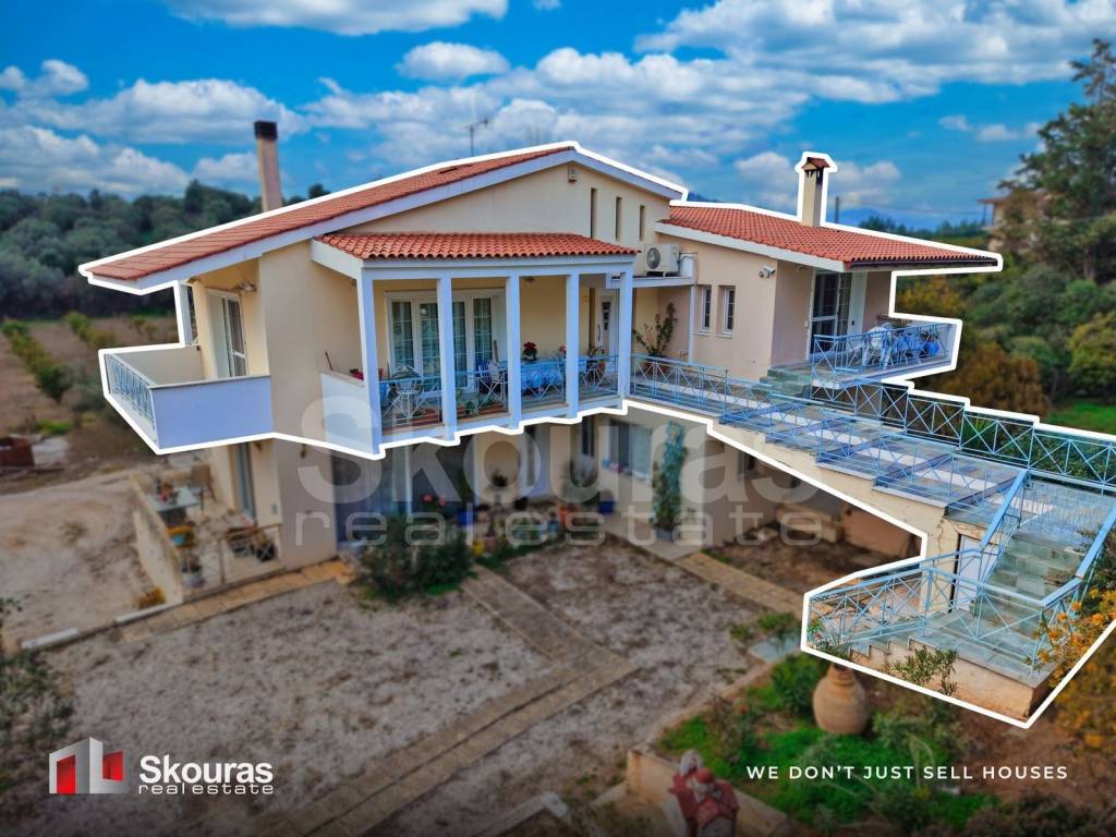 EXCLUSIVITY OF OUR OFFICE In Agios Andrianos, just a 5-minute drive from Nafplio and 12 minutes from Tolo Beach, an exceptional apartment of 185 sq.m. is for sale. The property is in a privileged location, surrounded by lush vegetation and trees, offering tranquility and a pleasant natural atmosphere. The residence features spacious and bright rooms and consists of a dining room, living room with fireplace, kitchen, storage room, WC, bathroom with bathtub, three bedrooms with built-in wardrobes, as well as an attic ideal for converting into an additional bedroom, playroom, or office. The apartment has its own independent entrance and offers large surrounding balconies with beautiful views of the nearby grove, as well as a terrace overlooking the surrounding mountains. Additionally, although the property was built in 1993, it is habitable and only requires minor renovation, mainly painting. It features marble floors, aluminum frames with double glazing and screens, air conditioning, solar water heater, oil heating, and an alarm system. The apartment is part of a duplex and shares the yard with the ground-floor apartment, where there is a BBQ area and covered parking. This apartment is an ideal choice for a primary residence for a large family. Skouras Real Estate #1 Greek Real Estate Agency in the Peloponnese 4 Offices: Nafplio | Kalamata | Corinth | Porto Heli 3000+ Properties | 18+ Years of Experience | Support in 5 Languages Marketing & Website – European Property Awards 2020 Marketing Techniques & Development – EPPA 2022 & 2024 Call Center: +30 27520-29529 Mobile: +30 6980033022 Email: alr@skourasrealestate.gr Property Manager: ROYS Alexis Over 3,000 properties available at: www.skourasrealestate.gr Note: The property information is based on data provided by the owners. Skouras Real Estate bears no responsibility for any inaccuracies. ID card or passport required for property visits. Map locations are approximate.