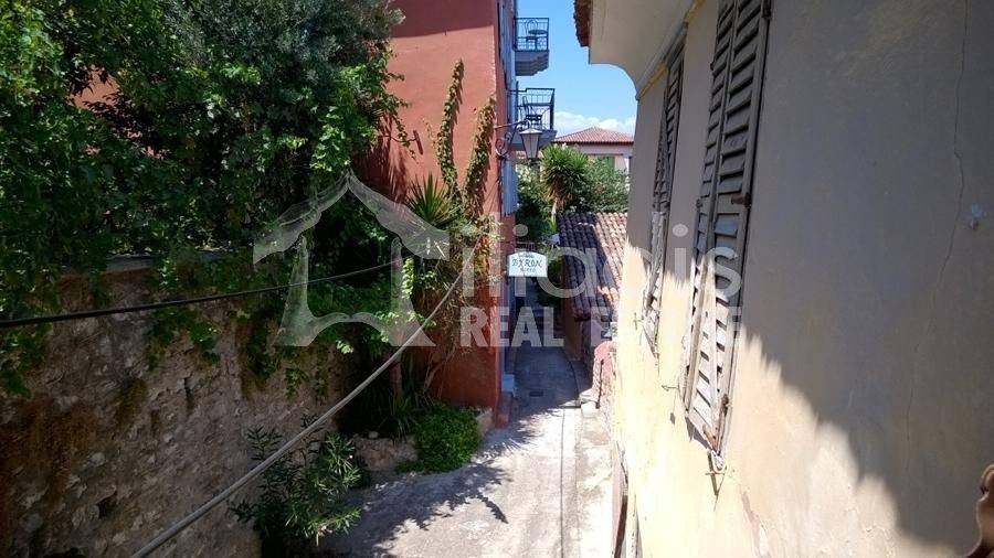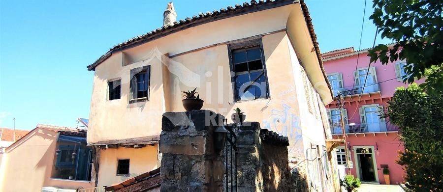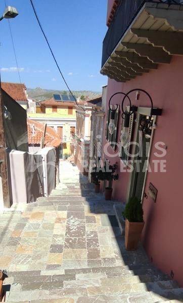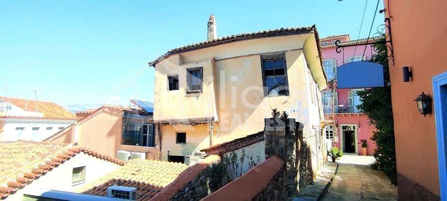 Nayplio - Detached House 216sqm plot size 86sqm, bedrooms 5, levels 3, basement - ground floor - 1st, needs renovation, year built 1950, energy class under issuance, living room, kitchen, dual aspect apartment, luminous, frontage, storage space, frames wooden, floor type wood, internal staircase, within city plan, residential zone, southern orientation, access from pedestrian street, investment property, commercial use. A listed detached house building is for sale, in the picturesque alleys and at a minimum distance from the central pedestrian streets of the historic center, in the old town of Nafplio. It has a total area of ​​216 sq m. and consists of three levels. Basement for auxiliary use of 50 sq m., ground floor of 86 sq m. which is connected by an internal staircase to the 1st floor of 79.60 sq m.. It is located on an elevated point in the traditional part of the old town, below the Catholic church and above the square of Agios Spyridon and is surrounded by remarkable tourist accommodations with a special aesthetic. It is bright with three facades as it is taller than other neighboring buildings. From its balcony and windows it has a view of lower buildings with their picturesque tiled roofs and the horizon above them. It has close access by car and an entrance from a small pedestrian shared plaza in the city. After necessary renovation, it can become a remarkable residence with special features. It also has the possibility of creating a small five-room hotel unit, with a reception area and storage spaces.