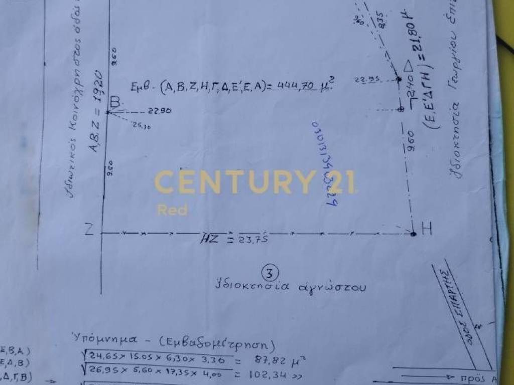 ID: #21001-13038 - Argosaronikos islands, Salamina: FOR SALE plane parcel 441sqm with facade length of 20m, corner with a Coefficient Building of 00. It is located in a residential area and its zoning is residential with a great view. It is located only 500m away from the sea. The asking price is 24.000€.