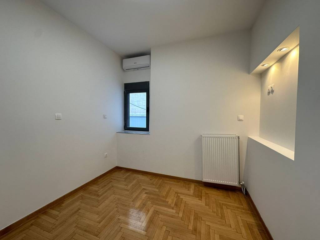 NO AGENTS In the heart of Nea Smyrni, next to the Alsos park and in an exceptionally quiet location, a unique apartment with a total surface of 67 sq.m. is available. The property is situated on the 1st floor of a two-unit building, with zero communal expenses, on a paved street that offers tranquility and a pleasant residential atmosphere. The apartment has been fully renovated and is classified as Energy Class A, featuring modern design and high construction standards. It consists of two bedrooms, one of which is a master bedroom with an en-suite bathroom, a contemporary kitchen equipped with all built-in appliances (oven, washing machine, cooktop), and a very bright living room with a balcony offering unobstructed views of the Nea Smyrni Alsos. Additional features include external thermal insulation (thermal facade), autonomous natural gas heating, A+ energy-efficient air conditioning units, thermal aluminum window frames with electric shutters and insect screens, security cameras, and a video intercom system. Special thermal insulation has been applied on the rooftop, and the property also includes exclusive use of a 67 sq.m. private roof terrace, providing a rare and highly desirable outdoor space.