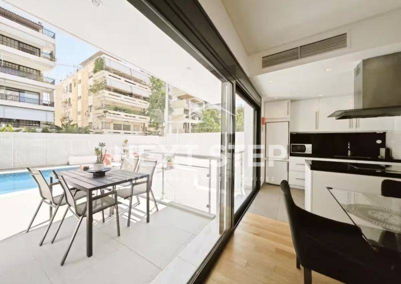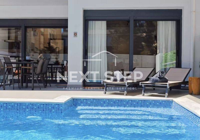Property Code: R121 - Maisonette FOR RENT in Voula Kato Voula for € 5.000 . This 150.00 sq. m. furnished Maisonette is on the Ground floor and features 3 Bedrooms, an open-plan kitchen/living room, 2 bathrooms . The property also boasts Heating system: Autonomous heating - Oil, wooden floor, Window frames: Aluminium, Armourplated door, elevator, garden, swimming pool, A/C, heating per level, alarm system, electrical appliances, insect screens, playroom, satellite dish, intercom TV, internal staircase. The building was constructed in 2018 . Building Energy Rating: B+ Distance from sea 100 meters,