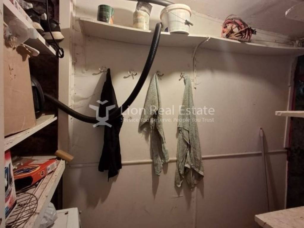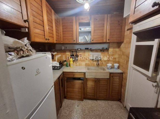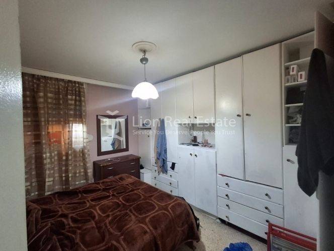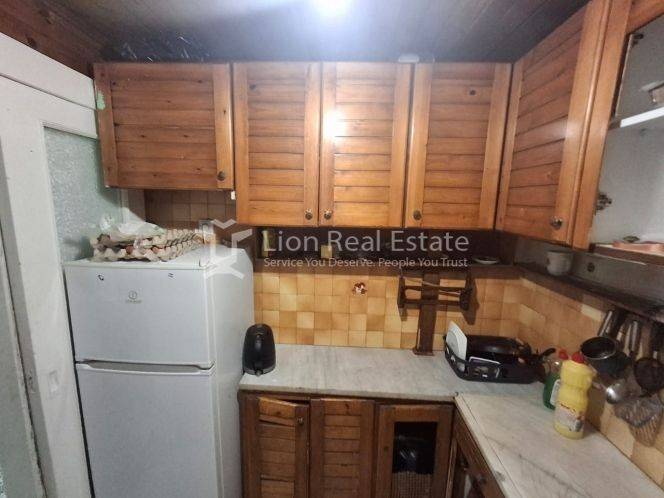The property consists of one bedroom, a living room, a kitchen, a bathroom, and a storage room, offering a functional and comfortable layout. It features oil central heating, wooden and aluminum window frames with double glazing on the front side, mosaic flooring, built-in wardrobes, and electrical appliances.