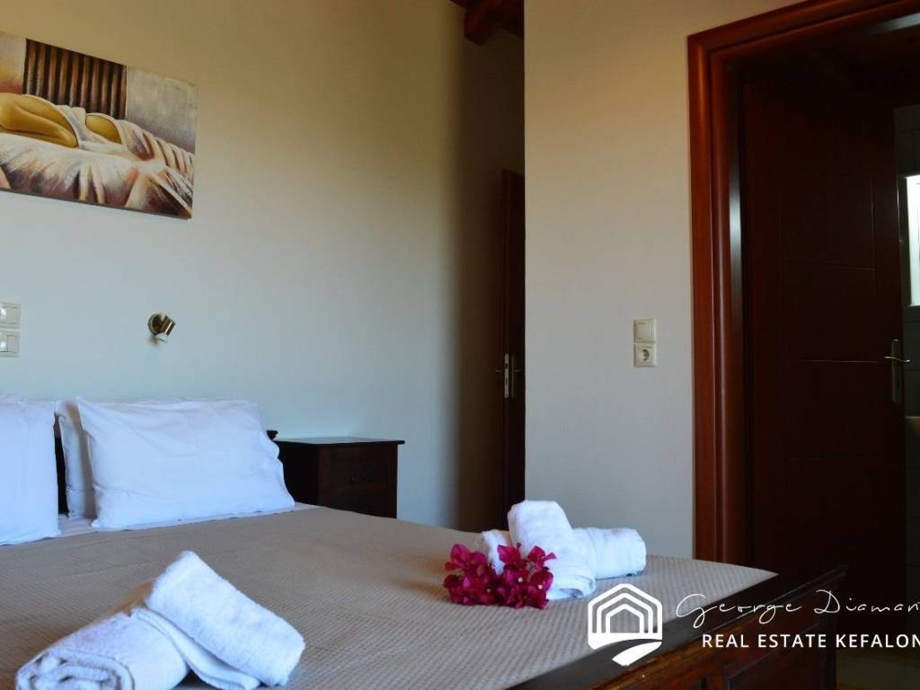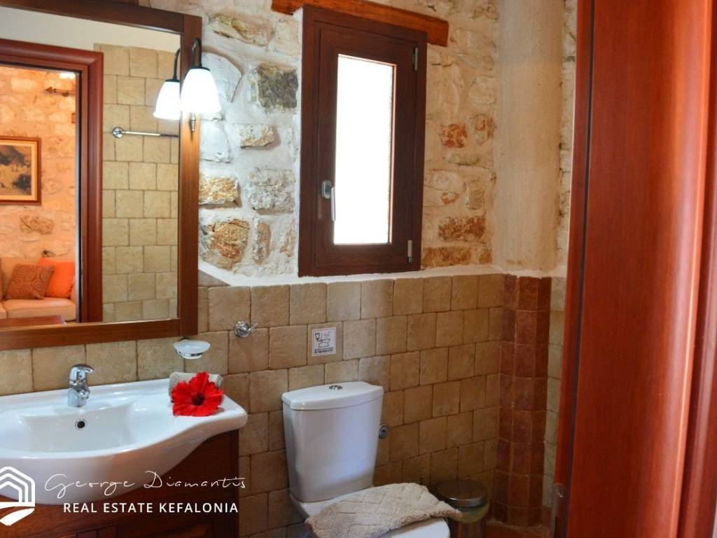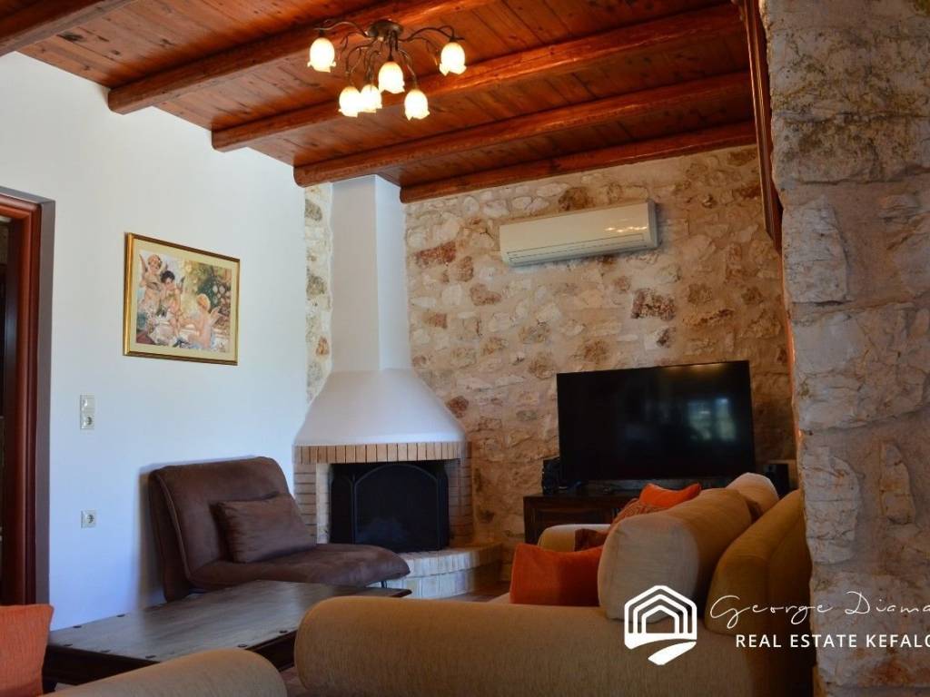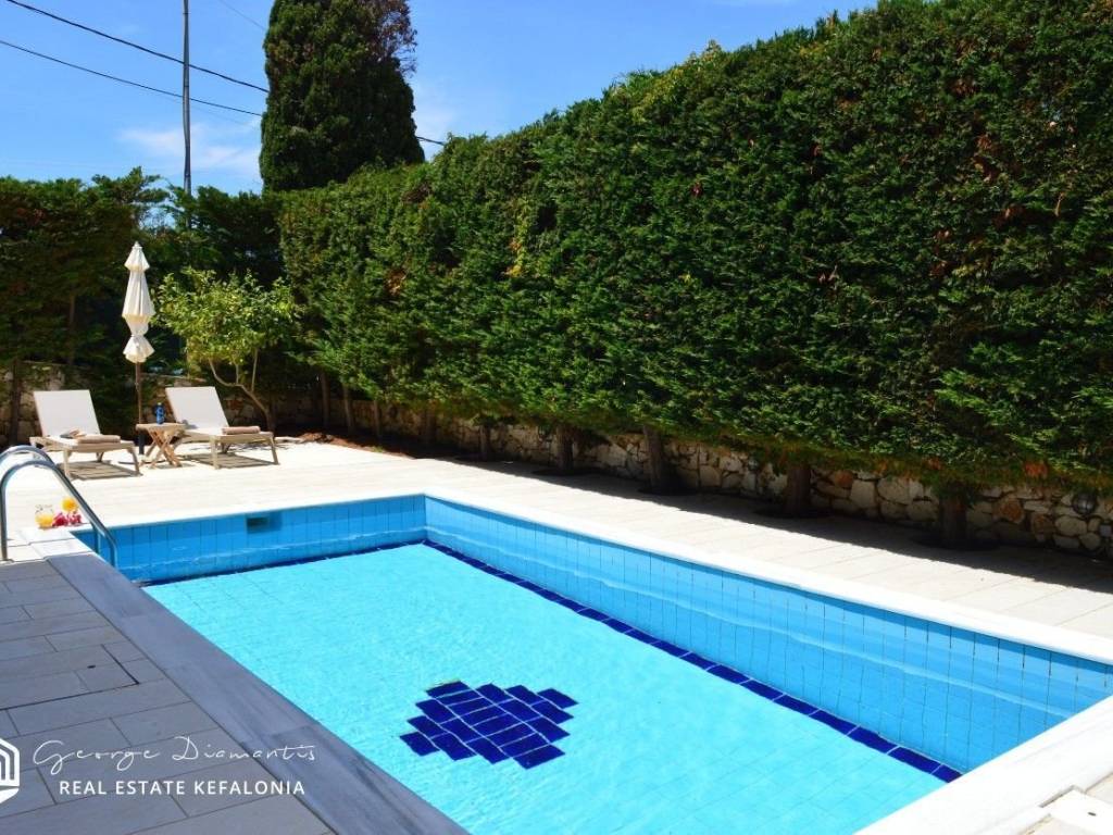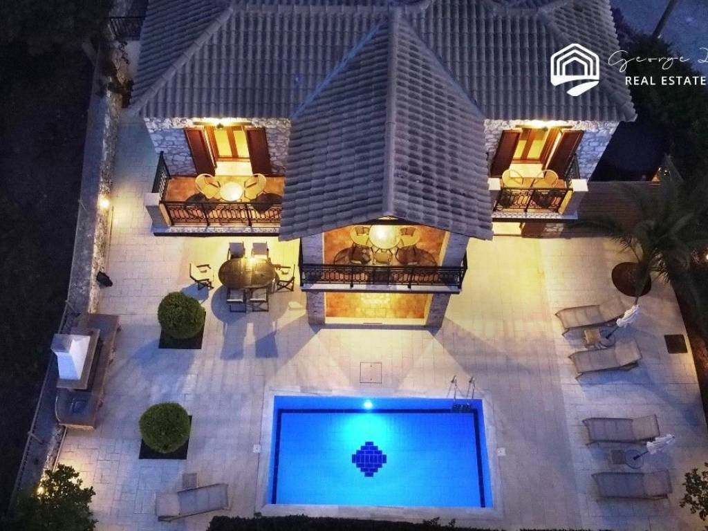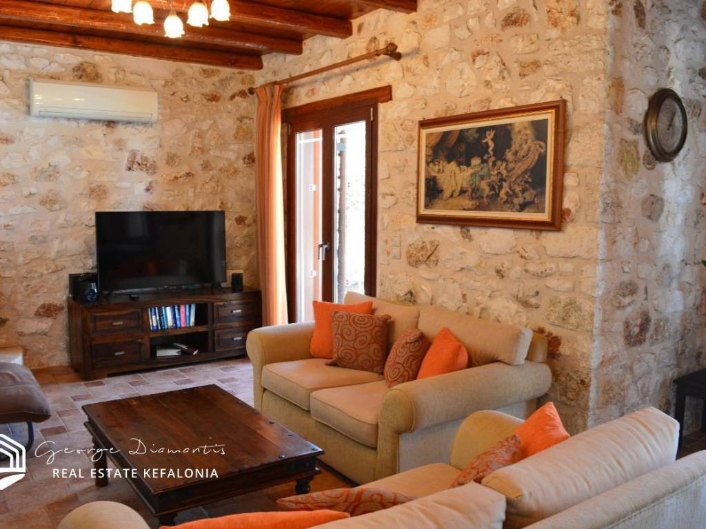 For sale a stone two-storey villa of 136 sq.m., on a plot of 470 sq.m. within a settlement, in Antipata in Erissos. Its location makes it unique as it is located in a quiet environment, surrounded by greenery, offering the visitor privacy and tranquility. On the ground floor of the villa there is the kitchen, and in an open space the living room and dining room. A wooden staircase leads to the first floor where there are 3 en suite bedrooms. All three bedrooms have their own balcony from which they have a unique view that reaches the sea. There is a swimming pool in the garden, and a parking space. The villa is ideal for a holiday home, but could also be used for a tourist investment, giving the owner a good income. The village of Antipata has its own traditional market and is located just 5 minutes from the cosmopolitan Fiskardo, with its many shops and its picturesque port, which connects Kefalonia with Lefkada and Western Greece. It is just a few minutes away from the beautiful beaches of Dafnoudi and Emplisi with their clear and blue waters. In 20 minutes you can find the picturesque village of Assos, with its historic castle and its unique beauty. For more information contact us.