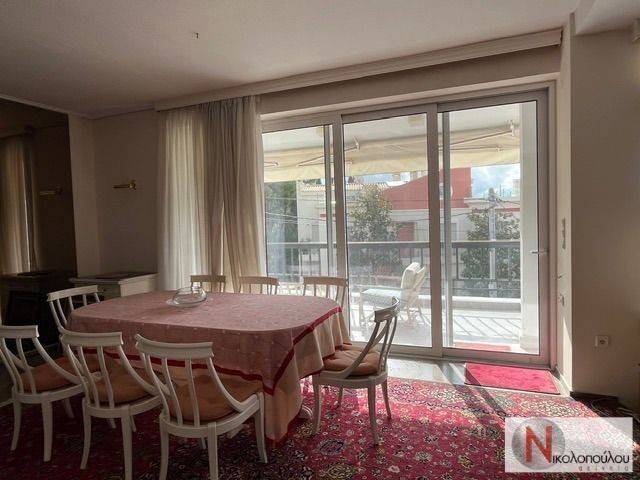 Πλησίον πλατείας, οροφοδιαμέρισμα 2ου ορόφου, με δική του ανεξάρτητη είσοδο, 217 τμ, 2 χώροι υποδοχής, τζάκι, τραπεζαρία, ανακαινισμένη κουζίνα, 3 υπνοδωμάτια (1 master), 3 μπάνια, γραφείο ή 4ο υπνοδωμάτιο, βοηθητικό δωμάτιο, ηλιακός θερμοσίφωνας, 2 a/c, ανεξαρτησία θέρμανσης με πετρέλαιο, αποθήκη 9 τμ, 2 θέσεις parking στην πιλοτή μπρος - πίσω, αποκλειστική χρήση δώματος.