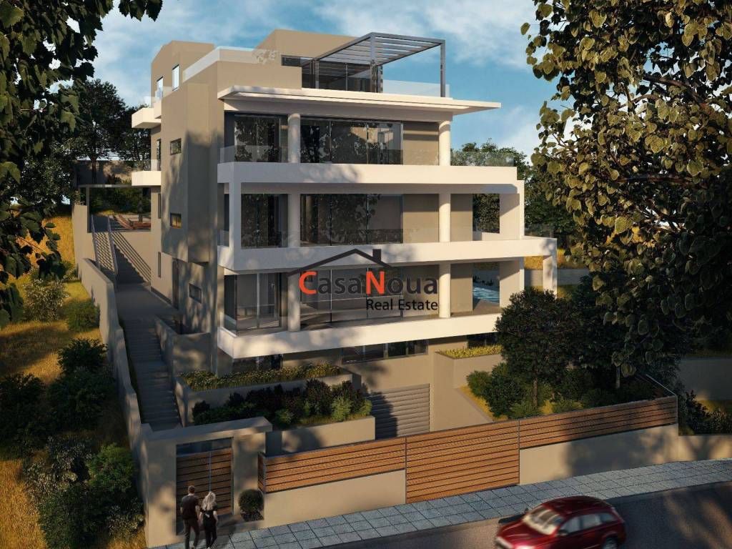 Διατίθεται προς πώληση εντυπωσιακή μεζονέτα ισογείου συνολικής επιφάνειας 240 τ.μ., με playroom και ιδιωτική πισίνα, σε προνομιακή τοποθεσία. Το ακίνητο αποτελεί μέρος σύγχρονου συγκροτήματος τριών κατοικιών υψηλότατης ποιότητας κατασκευής και αισθητικής, με εφαρμογή όλων των σύγχρονων προδιαγραφών δόμησης και ενεργειακή κλάση Α+. Το κύριο επίπεδο, υπερυψωμένο σε σχέση με το δρόμο και με την κεντρική είσοδο της κατοικίας, περιλαμβάνει φωτεινό χώρο καθιστικού με μεγάλα ανοίγματα και άμεση έξοδο σε ευρύχωρη βεράντα με θέα, καθώς και πρόσβαση στον ιδιωτικό κήπο με αποκλειστική πισίνα. Στο ίδιο επίπεδο βρίσκονται τρία υπνοδωμάτια, εκ των οποίων το ένα είναι master με en suite μπάνιο, ένα επιπλέον μπάνιο και σύγχρονη κουζίνα ενιαίας διάταξης. Στο επίπεδο του ημι-ισογείου, επίσης υπερυψωμένο, με πρόσβαση τόσο μέσω εσωτερικής σκάλας όσο και από ανεξάρτητη δεύτερη είσοδο, αναπτύσσεται playroom που μπορεί να λειτουργήσει ως δεύτερο καθιστικό με δυνατότητα δημιουργίας δεύτερης κουζίνας, ένα ακόμη υπνοδωμάτιο, πλήρες μπάνιο και άμεση πρόσβαση σε μεγάλη αποθήκη 28 τ.μ. Η κατοικία διαθέτει θερμοπρόσοψη, ενδοδαπέδια ατομική θέρμανση με αντλία θερμότητας, κεντρικό σύστημα κλιματισμού VRV, πόρτες ασφαλείας, ηλεκτρικά ρολά και σίτες. Επιπλέον υπάρχει προεγκατάσταση συναγερμού με εξωτερικά ραντάρ, καθώς και δύο άνετες κλειστές θέσεις στάθμευσης με υποδομή φόρτισης ηλεκτρικού οχήματος, προσφέροντας ένα ολοκληρωμένο και πολυτελές περιβάλλον κατοικίας.