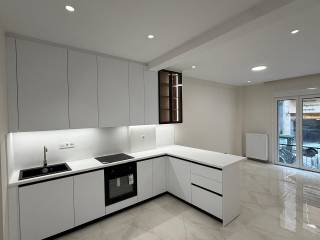 For sale: fully renovated 53 sq.m. apartment, bright and cross-ventilated, with modern design and high-quality finishes. It consists of 1 bedroom, 1 bathroom, and an internal storage room, as well as a spacious open-plan kitchen–living room with a comfortable entrance area. The property features independent natural gas heating, new radiators, solar water heater, alarm system, security door, and video intercom. Additionally, it has new energy-efficient aluminum frames by Europa, with screens and electric shutters, providing excellent thermal and sound insulation. The complete renovation (2026) includes new plumbing and electrical systems, false ceilings with linear and spot lighting, and a modern, high-quality design. Ideal for personal residence or investment, ready for immediate occupancy with no additional expenses.
