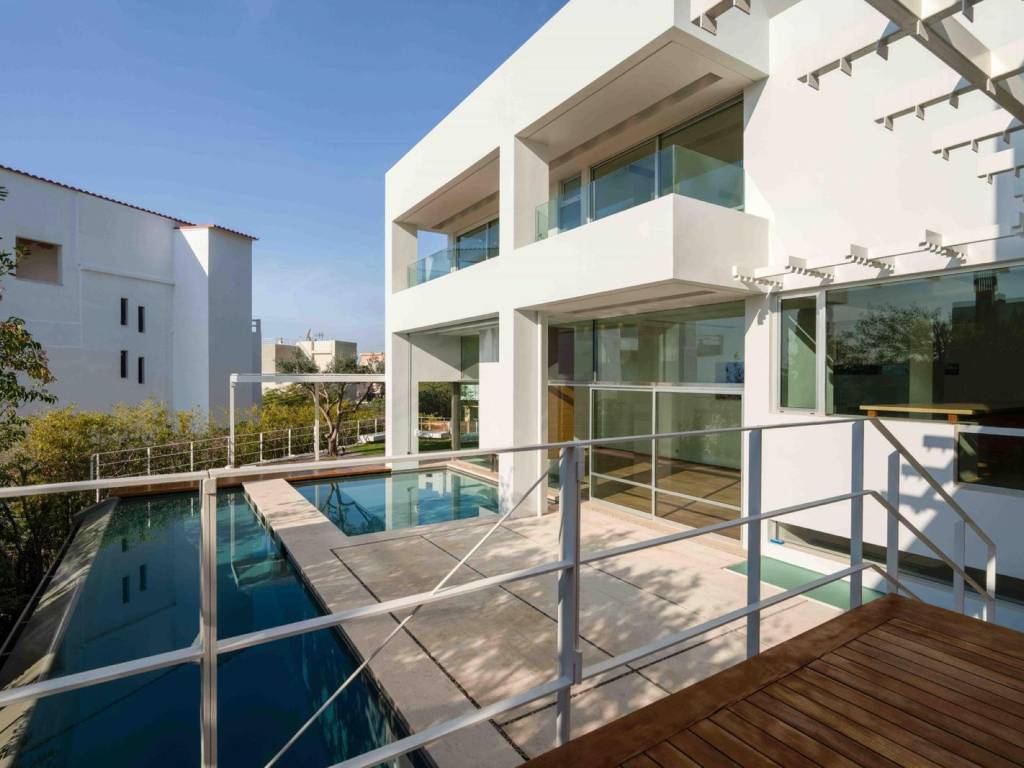 A truly exceptional villa of refined aesthetics, offering a total living area of 590 sq.m., set on a 650 sq.m. corner plot in a privileged and tranquil neighborhood of detached residences. Adjacent to a natural park and enjoying unobstructed panoramic sea views, this residence was designed and constructed by one of the most renowned architectural firms, combining clean contemporary lines with high-specification materials, absolute privacy, and outstanding functionality. The villa is arranged over three levels and stands out for its ergonomic layout and abundant natural light, thanks to expansive floor-to-ceiling glass surfaces that allow sunlight to flow throughout the spacious living and kitchen areas. The ground floor features an impressive entrance hall, an elegant dining area, a large living room with fireplace, a family lounge, a fully independent and well-appointed kitchen with its own storage room, as well as a guest WC. On the first floor, the impressive grand master bedroom offers an en-suite bathroom with jacuzzi and a generous walk-in wardrobe. Two additional master bedrooms, each with en-suite bathrooms, complete this level. All bedrooms enjoy large balconies and uninterrupted sea views. The semi-basement level includes a staff room with en-suite bathroom, an independent guest suite also with en-suite bathroom, a spacious playroom with home cinema installation and Dolby Surround system, a laundry room, and additional auxiliary spaces. The outdoor areas are equally striking, featuring a large overflow swimming pool, wooden deck, BBQ area, and a beautifully landscaped garden that surrounds the villa on all sides, creating an ideal setting for relaxation and entertaining. The property is equipped with a private elevator suitable for wheelchair access, autonomous underfloor heating, independent central air conditioning, smart home system, a four-car garage in tandem, alarm and fire detection systems, central sound system on the ground floor, internal intercom, reinforced security door, and a rainwater collection tank. Originally built in 2004, the villa was fully renovated in 2025 by the same architectural firm responsible for its original design, achieving exceptional results. This is a rare residence that perfectly combines luxury, comfort, and quality of life, ideal for families seeking a truly distinctive home. Location: Voula enjoys a privileged position on the Athenian Riviera, offering immediate access to all everyday amenities and located just 30 minutes from the historic center of Athens. Unique Characteristics: Voula is a vibrant yet calm and safe residential area, home to stylish boutiques, wine bars, cafés, restaurants, and a beautiful beach. It also features a well-equipped public hospital and a lively commercial center with supermarkets, gyms, banks, while being in close proximity to international schools. Accessibility: The area is well connected by public bus services to the city center and to Glyfada, the nearest major shopping and entertainment hub. It is approximately 20 minutes by car from Athens International Airport and just 10 minutes from the landmark Ellinikon redevelopment project. Investment Potential: As with most areas of the Athenian Riviera, property values in Voula demonstrate strong and consistent investment potential, offering attractive long-term returns.