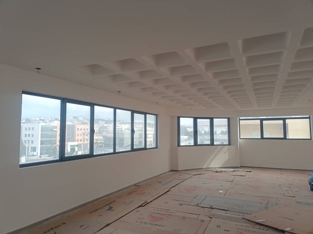Premium Office Space 130 sq.m. | High Visibility at Attiki Odos Overview: A prime 1st-floor professional workspace of 130 sq.m. is available for rent in a strategic location in Neo Irakleio. Situated just steps away from Exit 9 of Attiki Odos, the property offers unparalleled visibility for corporate branding and signage. Features & Amenities: The premises will be delivered freshly painted and fully ready for move-in (available from March 15th), featuring high-end functionality: Lighting: Full installation of lighting fixtures based on a specialized lighting design study. Digital Infrastructure: Integrated Legrand perimeter trunking for easy network/power cable routing and pre-installed Fiber Optic connectivity. Facilities: Private kitchenette and fully equipped restrooms (Men/Women) with instant water heaters. Security & Comfort: Security door, intercom system, and premium aluminum frames with high soundproofing standards. Location Highlights: Accessibility: Immediate access to Irakleiou Avenue and within walking distance to the Suburban Railway (Proastiakos). Natural Light: Dual-aspect (bright and airy) workspace with access to a private balcony. Versatility: Open-plan layout allowing for flexible interior customization according to your business needs. Leasing Terms: Monthly Rent: €1,480. Special Offer: A rent-free grace period is provided to facilitate your initial setup and relocation. Availability: March 15th, Ideal for: Tech companies, law firms, engineering offices, and businesses seeking prestige, accessibility, and ready-to-use infrastructure. Contact Hours: 11:00 - 18:00