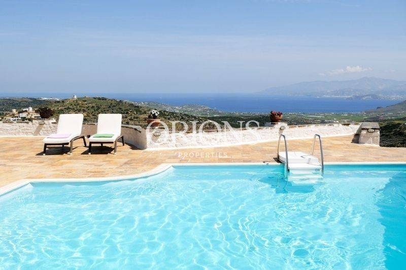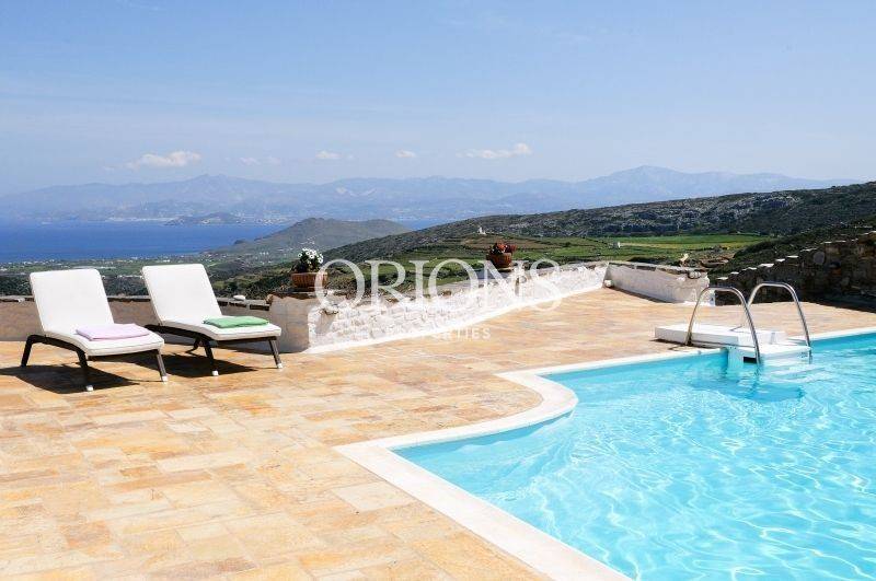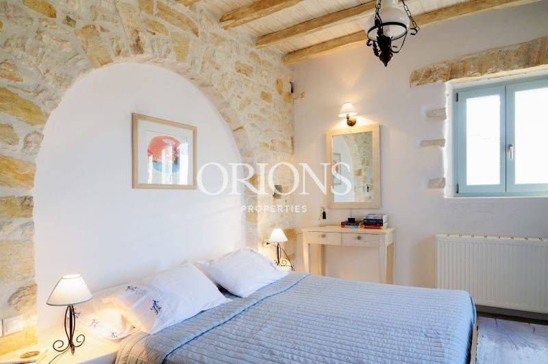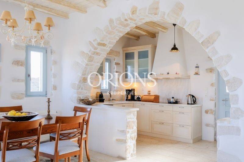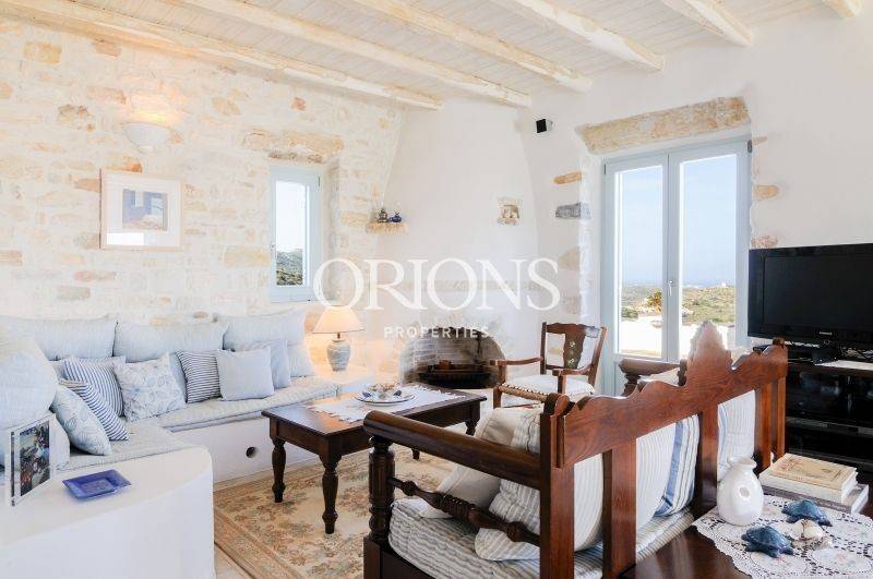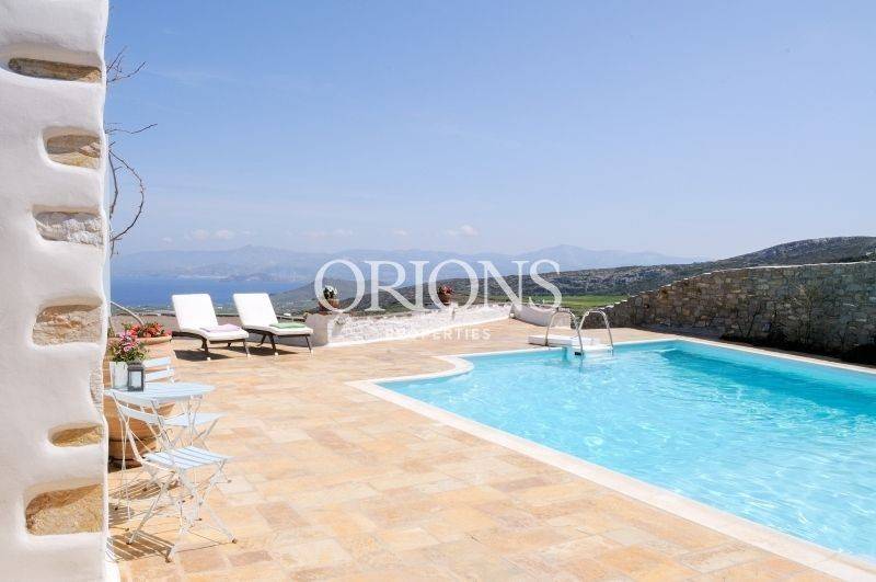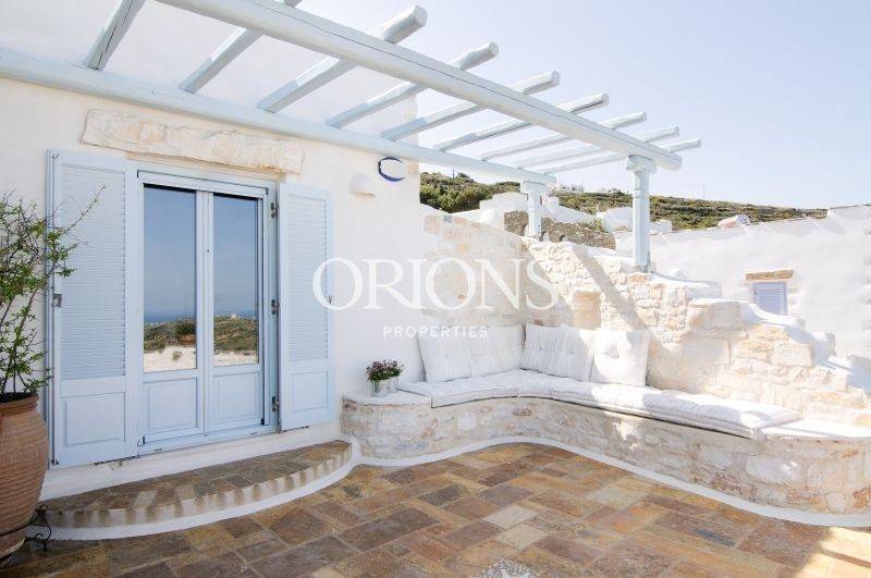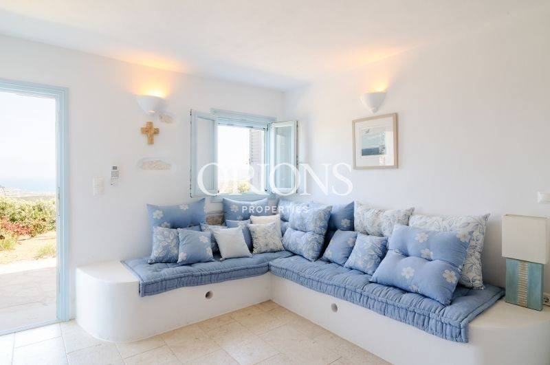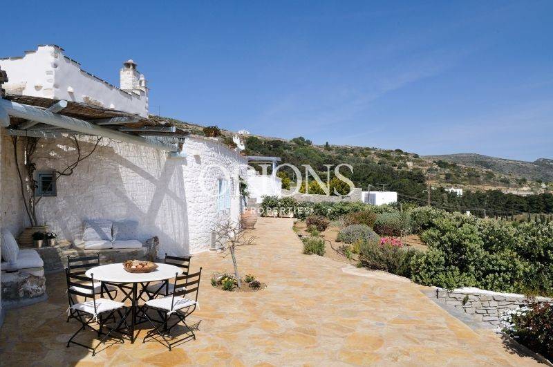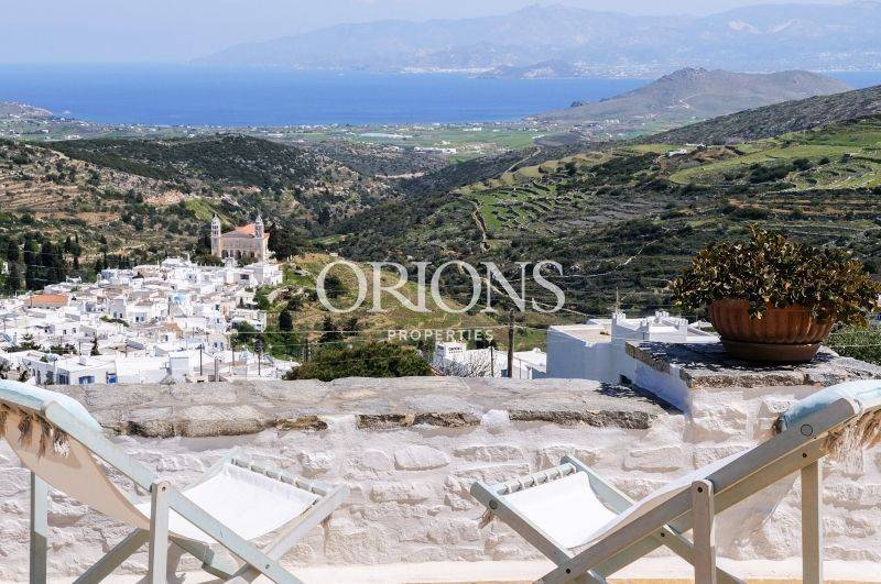 Set on the hillside with open views across the valley, the village rooftops, and the sea toward Naxos, this fully furnished Cycladic villa sits on a 1,385 sq.m. plot and offers a total of 230 sq.m. of living space. The property is arranged over two levels and separate volumes, allowing privacy and an easy flow between spaces.