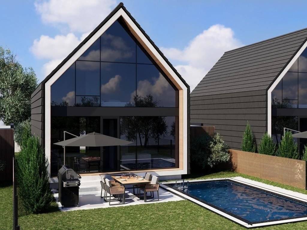 Scandinavian-Style Villas for Sale Zakynthos, Greece Modern Scandinavian-style villas are available for sale within an organized residential development in Zakynthos. The project consists of 12 independent residences, located within a gated and controlled community, in a quiet area surrounded by natural landscape and offering mountain views. The location provides direct access to the town of Zakynthos, main infrastructure, and the road network, while ensuring privacy and low levels of disturbance. Technical specifications: Two-level residences with a total internal area of 85–91 sq.m. on a plot ranging from 250 to 450 sq.m., featuring a distinctive double-height living area as its main architectural element. The ground floor includes a living room, a combined kitchen–dining area, one bedroom, a bathroom with shower, a storage room, and verandas, while the first floor consists of a master bedroom, an office area, and an open space overlooking the living area in double height. The house is delivered with a fully equipped kitchen, an air conditioning system, a private water storage tank, and internet connectivity via Starlink, with optional features including a private 6 × 3 m swimming pool, covered parking, and a photovoltaic system with inverter and 20 kWh battery storage. Suitable for owner-occupation or tourist rental use.