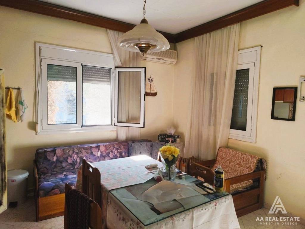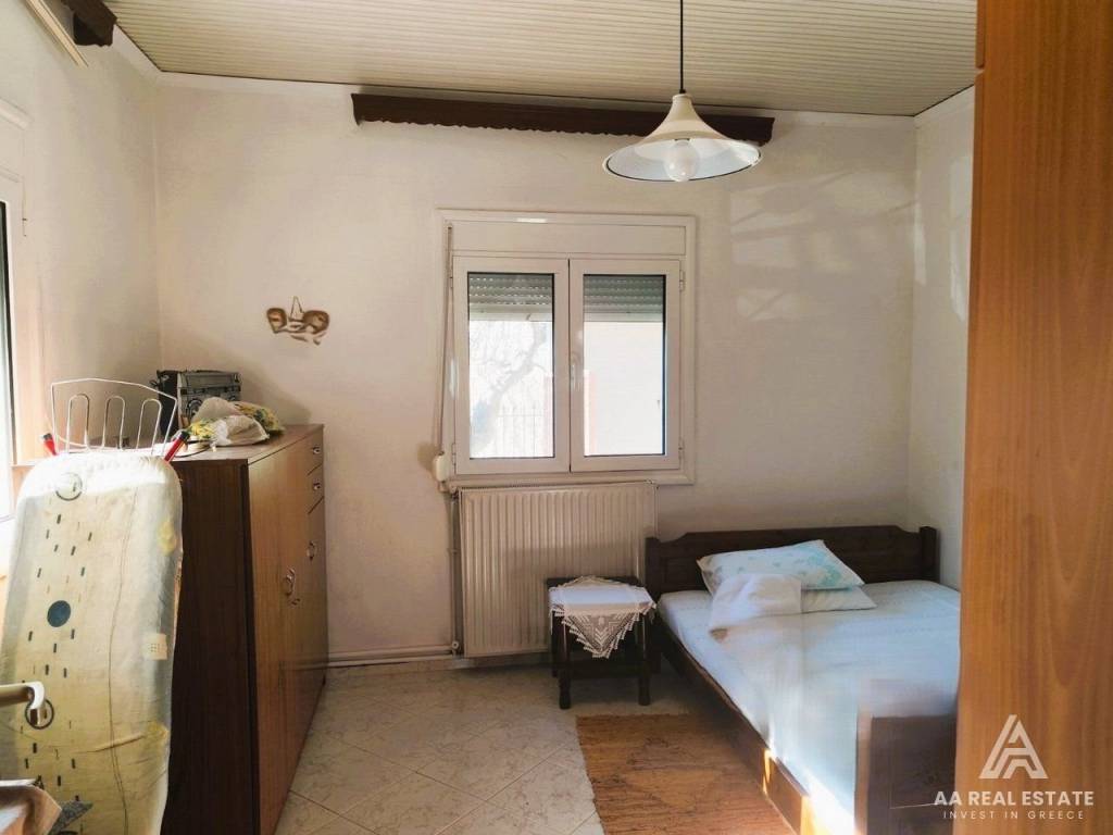 PETRALONA HALKIDIKI - FOR SALE bright renovated fully furnished and equipped detached house of 70 sq m on a plot of 300 sq m in a quiet spot near the center of the village, in a garden with trees and air conditioning, parking space. Access from asphalt. The house has 2 bedrooms, living room, separate kitchen and bathroom. Large storage room with gas burner. In excellent condition, tiled roof, double glazed synthetic frames, security door, tiled floors, air conditioning, veranda with wooden roof, solar thermal system. Can be inhabited immediately. It is located in a beautiful neighborhood with openness and tranquility near the center of the village, just 9 kilometers from Triglia where there are all kinds of shops, restaurants, etc., but also within close proximity to the sandy beaches of the Vergia and Sozopoli area 12 kilometers, 10 minutes. The distance from the center of Thessaloniki is 50 km and from Macedonia airport 39 km. It is an ideal choice for a residence in a quiet environment with a clean atmosphere and greenery The price also includes a plot of land of 850 sq m in Petralona. Renovated, open parking spaces 1, distance from the beach 12000, painted, terace, type of glass duble, land surface 300, storage surface 6, energy class Ε, inside settlement, investment, furnished, zone residential, solar water heater, garden, air conditioning, frames synthetic, equiped, security door, orientation southeast, access asphalt, negotiable price, awning, flooring type tile, bright
