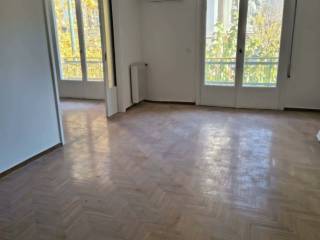 (code 51911) Victoria Square: Apartment for rent 140 sq.m. of facade, bright on the 1st floor with elevator with central oil heating. It consists of 3 bedrooms with the possibility of a 4th room, 1 kitchen, 1 living room, verandas, 2 bathrooms and 1 WC. It was built in 1970, painted. It is located close to the Metro, public transport, market, schools and has a security door, 5 new air conditioners, energy class E, mosaic & wood floors. It is ideal for students or families or workers and pets are allowed.