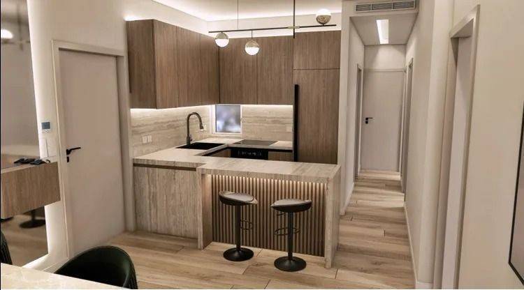Brand-new, luxurious 120 sq.m. boutique apartment on the 5th floor in the heart of Piraeus, thoughtfully designed by an architectural firm. It features 3 bedrooms, a living room, kitchen, 1 bathroom, and 1 WC, with individual natural gas heating and a fireplace. Gypsum board ceilings with hidden lighting provide a modern and elegant touch, while the panoramic view of the Piraeus Tower adds a unique atmosphere. Ideally located, just 50 meters from Δημοτικό Θέατρο metro station and 100 meters from the marina. Unfurnished, perfect for those looking to create a personalized and comfortable living space.