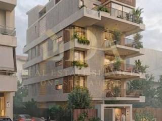 Glyfada, Exoni - Floor Apartment 100sqm bedrooms 2, master bedrooms 2, levels 2, 4th - 5th, under construction, constructionstage plots, year built 2026, energy class A+, living room, kitchen, 2 bathrooms, heating type: autonomous (heat pump), parking covered, quiet, dual aspect apartment, luminous, sea view, frontage, painted, electric roller shutters, storage space, solar heater, external thermal insulation, balconies, elevator, thermal shut-off frames, double glazed windows, door screen, ceramic tiles floors, secure door, video doorbell, luxurious, under floor heating, swimming pool, residential zone, access from asphalt, close to sea (up to 1000m).