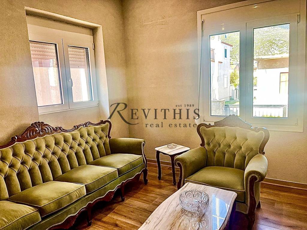 Detached house For sale in Distomo - Center. The Detached house is 140 sq.m. and it is located on a plot of 477,85 sq.m.. It consists of: 3 bedrooms, 2 bathrooms, 1 wc, 1 kitchens, 1 living rooms and it also has 6 parkings (2 Closed, 4 Open) and it was renovated in 2025. Its heating is Autonomous with Oil, Boiler, Radiator are also available, it has Alluminum frames, the energy certificate is: C and its floors are Tiles. The property's status is: Renovated, Excellent condition, it has Mountain view, Internal staircase, Security cameras, Internet. Price: €265.000. Parnassos Real Estate, contact phone: 2267032311, email: info@parnassos-realestate.com, website: