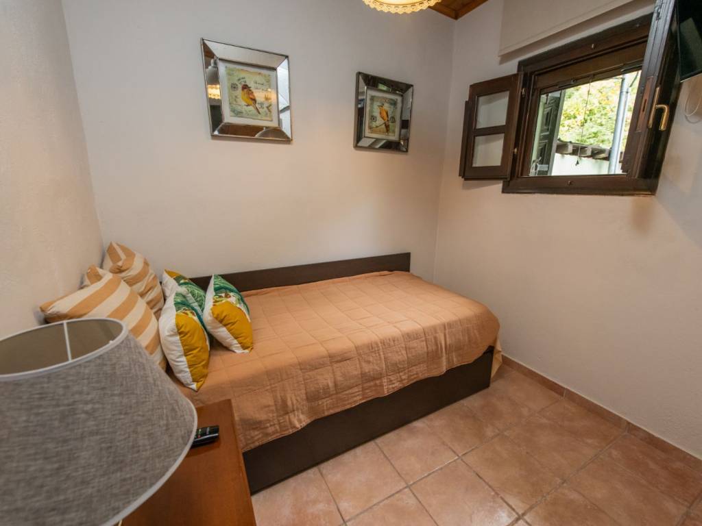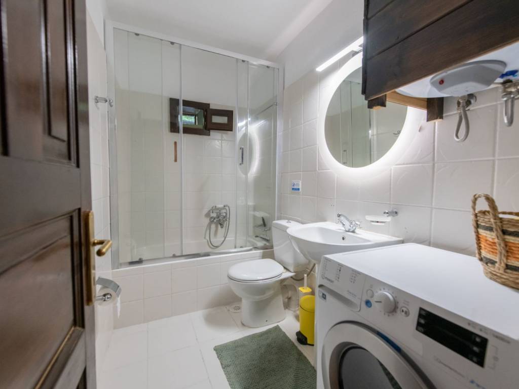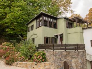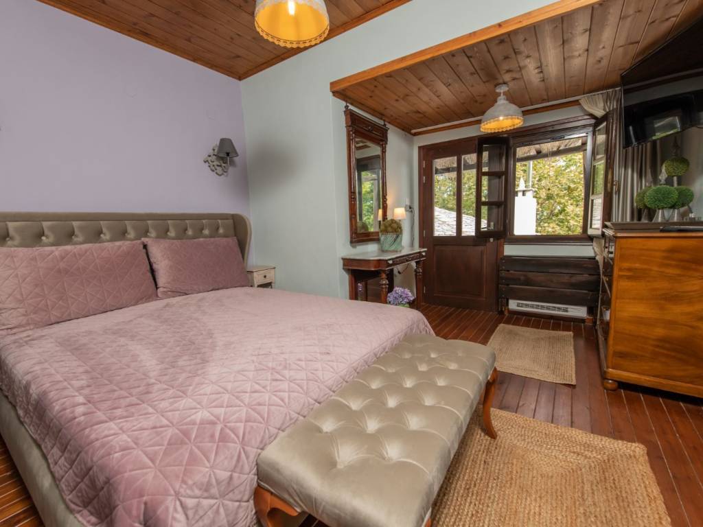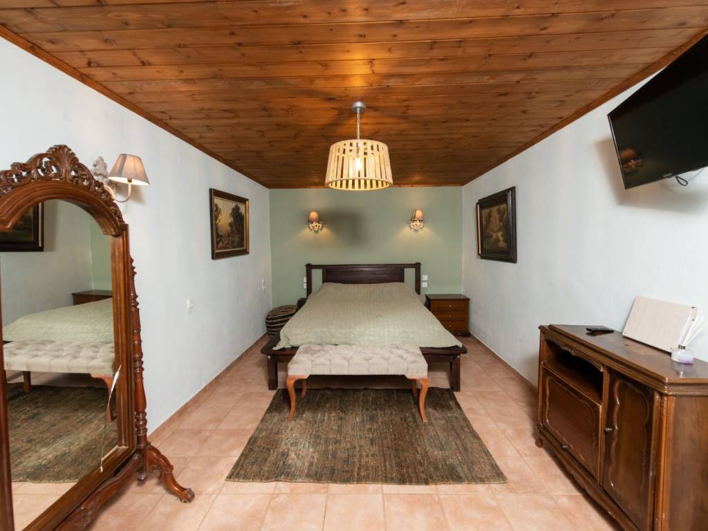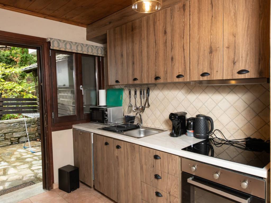 ΠΡΑΣΙΝΟ Το σπίτι βρίσκεται στον παραδοσιακό οικισμό της Αγίας Παρασκευής, μόλις 2 λεπτά με τα πόδια από την πλατεία του οικισμού με τον χαρακτηριστικό τεράστιο πλάτανο των 13 αιώνων. Αποτελείται από δύο σπίτια με ξεχωριστές εισόδους το καθένα. Μπαίνοντας στο πρώτο σπίτι θα συναντήσετε ένα ενιαίο χώρο όπου βρίσκεται το σαλόνι με το τζάκι, η τραπεζαρία, ένα γραφείο για “business and pleasure”, μία πλήρως εξοπλισμένη κουζίνα και ένας γωνιακός καναπές-κρεβάτι όπου μπορούν να κοιμηθούν 2 άτομα. Επίσης, υπάρχει ένα τεράστιο δωμάτιο, όπου πολύ άνετα χωρούν το διπλό κρεβάτι, μια ντουλάπα από τοίχο σε τοίχο, ένας επιδαπέδιος καθρέφτης αντίκα και το μπάνιο με μπανιέρα. Στον εξωτερικό χώρο υπάρχει πισίνα, χτιστό τραπέζι και πάγκος. Μπαίνοντας στο δεύτερο σπίτι θα συναντήσετε το σαλόνι όπου υπάρχει ένας γωνιακός καναπές – κρεβάτι, το τζάκι και η τραπεζαρία. Στον ίδιο χώρο θα βρείτε και ένα κλασικό πιάνο. Στη συνέχεια θα συναντήσετε ένα δωμάτιο με ένα μονό κρεβάτι το οποίο ανοίγει στο κάτω μέρος κι έτσι μπορούν να κοιμηθούν μέχρι 2 άτομα. Τέλος, στον ίδιο όροφο υπάρχει μία πλήρως εξοπλισμένη κουζίνα και ένα μικρό WC. Συνεχίζοντας, στον επάνω όροφο υπάρχουν δύο όμορφα διακοσμημένα δωμάτια, οι κύριες κρεβατοκάμαρες του σπιτιού, ήσυχες, φτιαγμένες με ρομαντική διάθεση με 1 διπλό κρεβάτι η καθεμιά. Η μία εκ των δύο έχει μπαλκονόπορτα που καταλήγει σε δικό της ιδιωτικό μπαλκόνι με τραπέζι και καρέκλες εξωτερικού χώρου για να αγναντεύετε τη θάλασσα. Στο χωλ τώρα υπάρχει μια δίφυλλη ντουλάπα κι ένα μεγάλο μπάνιο με μπανιέρα. Η επικοινωνία των ορόφων γίνεται μέσω ξύλινης σκάλας. Από τα ωραιότερα δωμάτια του σπιτιού είναι το αίθριο, ένας καθιστικός χώρος ανάμεσα στις δυο κρεβατοκάμαρες του πάνω ορόφου με απαράμιλλη θέα – θάλασσα, με γύρω γύρω τζαμαρίες. Τέλος, στις αυλές των σπιτιών υπάρχουν ένα τζακούζι (2×2.5m.) και μια μικρή πισινά (2x3m.) για 4 άτομα το καθένα Στην υπόλοιπη αυλή υπάρχουν χτιστά έπιπλα κήπου για να ξαπλώσετε.