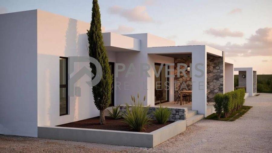 Kos-Irakleides, Antimachia, Detached house For Sale, 80 sq.m., In Plot 3800 sq.m., Property Status: under construction, Floor: Ground floor, 1 Level(s), 2 Bedrooms (1 Master), 1 Kitchen(s), 1 Bathroom(s), Heating: Personal - Fan Coil, View: Οutdoors, Building Year: 2026, Energy Certificate: Α++, 1 parking(s), Floor type: Tiles, Type of door frames: PVC, Features: Security door, Storage room, Electric Appliances, Double Glazed Windows, Window Screens, Balconies, Pets Allowed, No shared expenses, Luxury, Airy, Roadside, Bright, AirConditioning, Solar water system, Trees, Back yard (Garden), New Construction, Painted, Distance from: Airport (m): 1000, Seaside (m): 4500, City (m): 22000, Price: 160.000€. Parveris Real Estate, Tel: 2242027407, email: info@parverisrealestate.gr