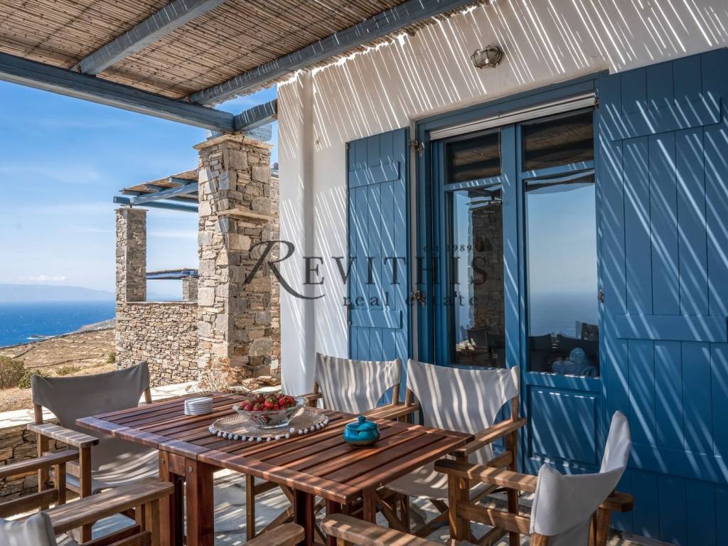 With its dominant feature being the breathtaking, unobstructed panoramic views over the Aegean Sea and the neighboring Cyclades islands, this exceptional detached residence of traditional Cycladic architecture is offered for sale in Kythnos, set on a 4,000 sq.m. plot, ensuring absolute privacy and a unique sense of freedom. The property is arranged over two levels and offers a total living area of approximately 105 sq.m. Its design faithfully follows authentic Cycladic architecture, featuring pergolas, stone details, wooden ceilings, and traditional window frames, all perfectly harmonized with the surrounding landscape. The upper level comprises a bright living room with an open-plan kitchen, one bedroom, a bathroom, and a spacious veranda with stunning sea views, ideal for relaxation and enjoying magnificent sunsets. The lower level offers two additional double bedrooms, a bathroom, and a storage room, providing comfort and functionality. The residence is equipped with air conditioning, electrical appliances, storage areas, and two outdoor parking spaces. The layout has been carefully designed so that all main living areas enjoy unobstructed sea views, making the view the true focal point of the property. This is a rare property, ideal as a high-end holiday home or as an investment opportunity, for those seeking authenticity, tranquility, and a truly unique living experience with the Aegean Sea unfolding before them.