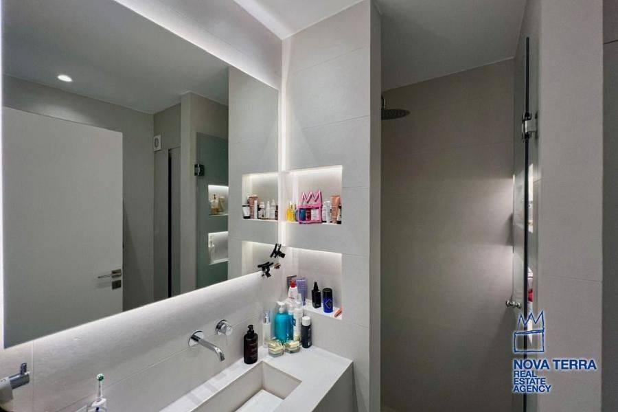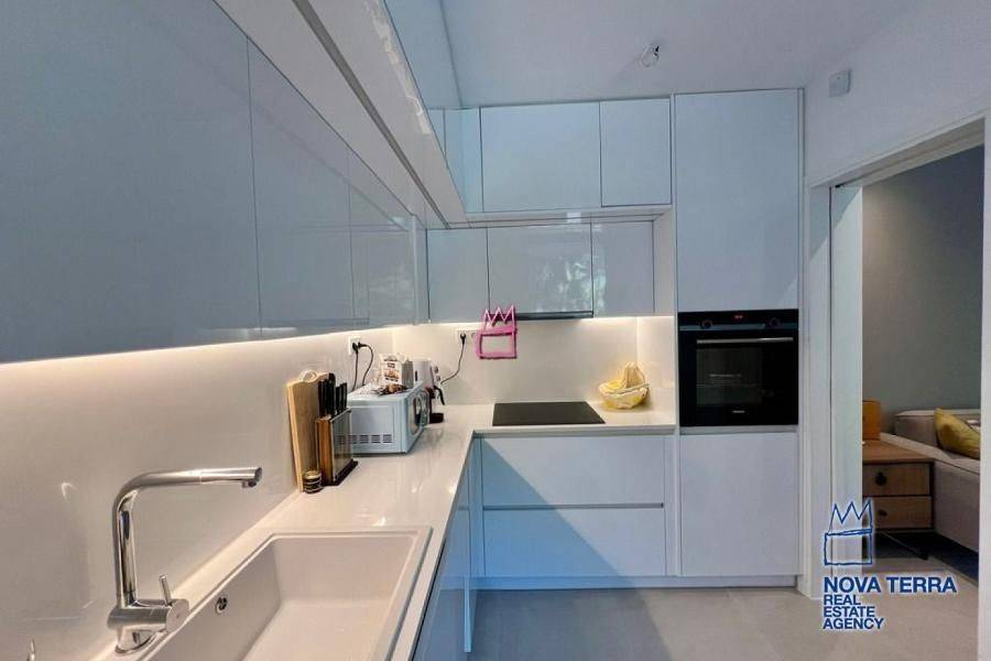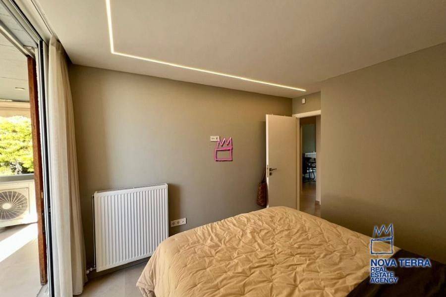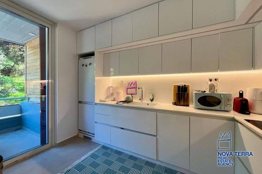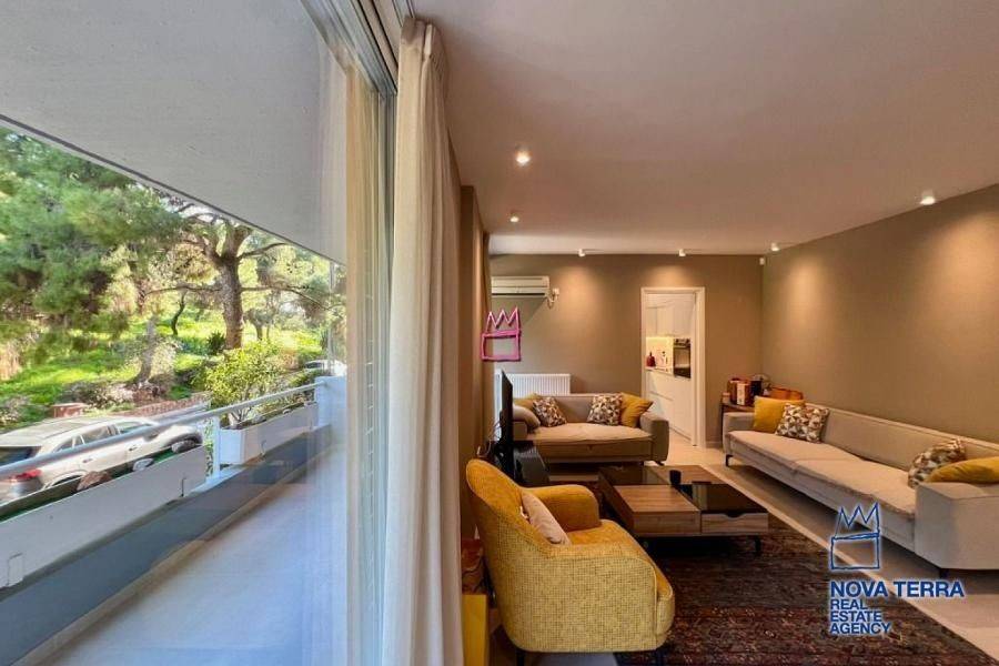 An exceptional 70 sq.m. apartment, fully renovated in 2025, is offered for sale in the highly desirable and prestigious area of Kavouri, Vouliagmeni, one of the most renowned seaside destinations of the Athenian Riviera. The property is located just 200 meters from the sea, providing immediate access to beaches, coastal walks, and the cosmopolitan lifestyle of the area. The apartment is situated on the 1st floor of a well-maintained residential building with an elevator. It is front-facing and through-floor, ensuring abundant natural light, excellent ventilation, and a strong sense of openness. It enjoys a peaceful view of the mountain and surrounding greenery, offering a calm and pleasant living environment. Layout: Two comfortable bedrooms, ideal for both permanent residence and holiday use Bright living room with direct access to the balcony,Modern and functional kitchen Bathroom with shower, designed in a contemporary style Balcony, suitable for relaxation and outdoor enjoyment The apartment features a minimal, modern aesthetic, with carefully selected details and tiled flooring throughout, ensuring durability and ease of maintenance. Technical Specifications & Comfort Features: Complete renovation in 2025 Heat pump heating system, offering high energy efficiency Air conditioning for year-round comfort Double-glazed windows for thermal and sound insulation High-quality aluminum window frames Security door,Alarm system,Insect screens and awnings,Freshly painted interiors Accessibility for people with disabilities (AMEA) Additional Advantages: Energy Class: C Suitable for primary residence, holiday home, or investment use Excellent location close to the beach, shops, restaurants, and public transportAn ideal combination of tranquility, natural surroundings, and close proximity to the sea Property Code: 52949 www.nova-terra.gr