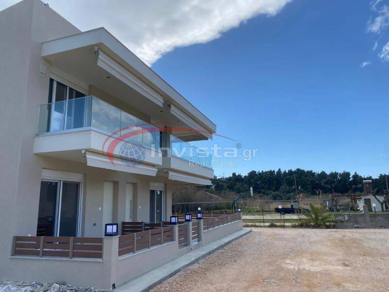 Property Code: 59992 - Maisonette FOR SALE in Sithonia Neos Marmaras for € 350.000 . This 87.00 sq. m. Maisonette consists of 2 levels and features 3 Bedrooms, Livingroom, Kitchen, 2 bathrooms . The property also boasts tiled floor, unobstructed view, Window frames: Aluminium, Security door, garden, A/C, insect screens, double-glazed windows, solar-powered water heater, open space, internal staircase. The building was constructed in 2025 Plot area: 1200 s.q. . Building Energy Rating: A Distance from sea 70 meters,