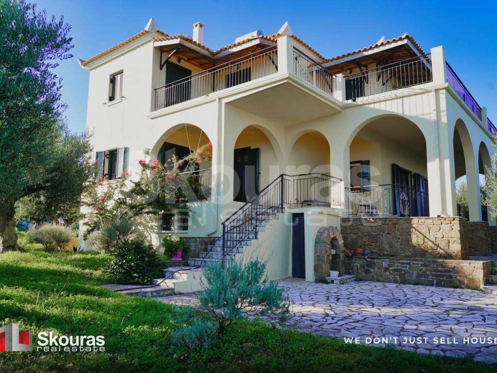 In the picturesque village of Livadakia, in the wider area of Koroni, a unique two-level property of 200 sq.m. with a 100 sq.m. basement is offered for sale, set within a well-kept 4,200 sq.m. olive grove at the edge of the village, combining absolute tranquility with unobstructed views. The residence consists of two fully independent floors of 100 sq.m. each, making it ideal both for private living and investment use. The first floor features a spacious, bright open-plan living room and kitchen, three comfortable bedrooms, one WC and one bathroom, while a large veranda provides direct access to the landscaped garden and olive grove. The second floor offers an open-plan living room and kitchen with fireplace, two bedrooms, one WC and one bathroom, with a wooden ceiling and décor that harmoniously blends traditional charm with modern elegance. The front, east-facing veranda is the ultimate gathering point, as the entire Messinian Gulf unfolds at your feet, Koroni appears in the distance, and the sunrise behind majestic Mount Taygetos can be enjoyed daily. The expansive 100 sq.m. basement, used as parking and storage, greatly enhances the property’s functionality. The surrounding area is a true destination of experiences, with historic Koroni, its Venetian castle, and crystal-clear beaches stretching to Vasilitsi offering endless opportunities for exploration, gastronomy and relaxation, while the private olive grove ensures peace without isolation, thanks to easy access to villages, beaches and services; this is a truly exceptional property, ideal either as a permanent residence or a high-yield investment, for those seeking quality of life, authenticity and the enchanting beauty of Messinia. Skouras Real Estate Real Estate Company in Peloponnese Nafplio | Kalamata | Portocheli | Corinth Member of EPPA, CEI, NAR Tel. Center: +30 2721101356 Mob.: +30 6980608225 bk@skourasrealestate.gr Property Manager: Charalampos Kastanas The property information we present is what has been provided by the owners. Our company is not responsible for any incorrect information provided. An ID/passport is required to visit properties. Property locations on the map are approximate. More than 2,000 properties on www.skourasrealestate.gr #wedontjustsellhouses