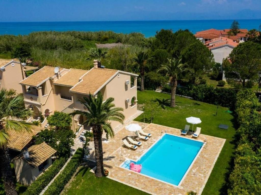 This stunning villa, ideally situated between the lively towns of Acharavi and Roda, combines style, comfort, and investment potential. Divided into two spacious apartments, the property features a total of four bedrooms, including one with a cozy fireplace, creating a warm and inviting atmosphere. A few years ago, the villa was carefully freshened up, enhancing its modern finishes and elegant details, including a striking spiraling wooden staircase that connects the floors. Every room offers privacy while ensuring a high standard of living. Balconies throughout the villa showcase breathtaking sea views, just 200 meters away, as well as vistas of the expansive garden, complete with a pool, BBQ and outdoor dining area, and a private playground—perfect for families or guests. The outdoor spaces invite relaxation, entertainment, and enjoyment of the Corfiot lifestyle. Adjacent to the villa is a charming one-bedroom cottage with its own bathroom, ideal for hosting guests or family. The villa’s location is exceptional. Positioned between Acharavi and Roda, two vibrant destinations known for their lively atmosphere, local amenities, and year-round appeal, the property offers the perfect balance of tranquility and accessibility. Proximity to a newly constructed, environmentally sensitive hotel adds convenience without disturbing the natural charm of the area. Currently operating successfully as a holiday rental, this villa offers strong income potential. With its prime location, luxurious features, and rental track record, it is an ideal choice for anyone seeking a high-quality residence or a profitable investment in Corfu.