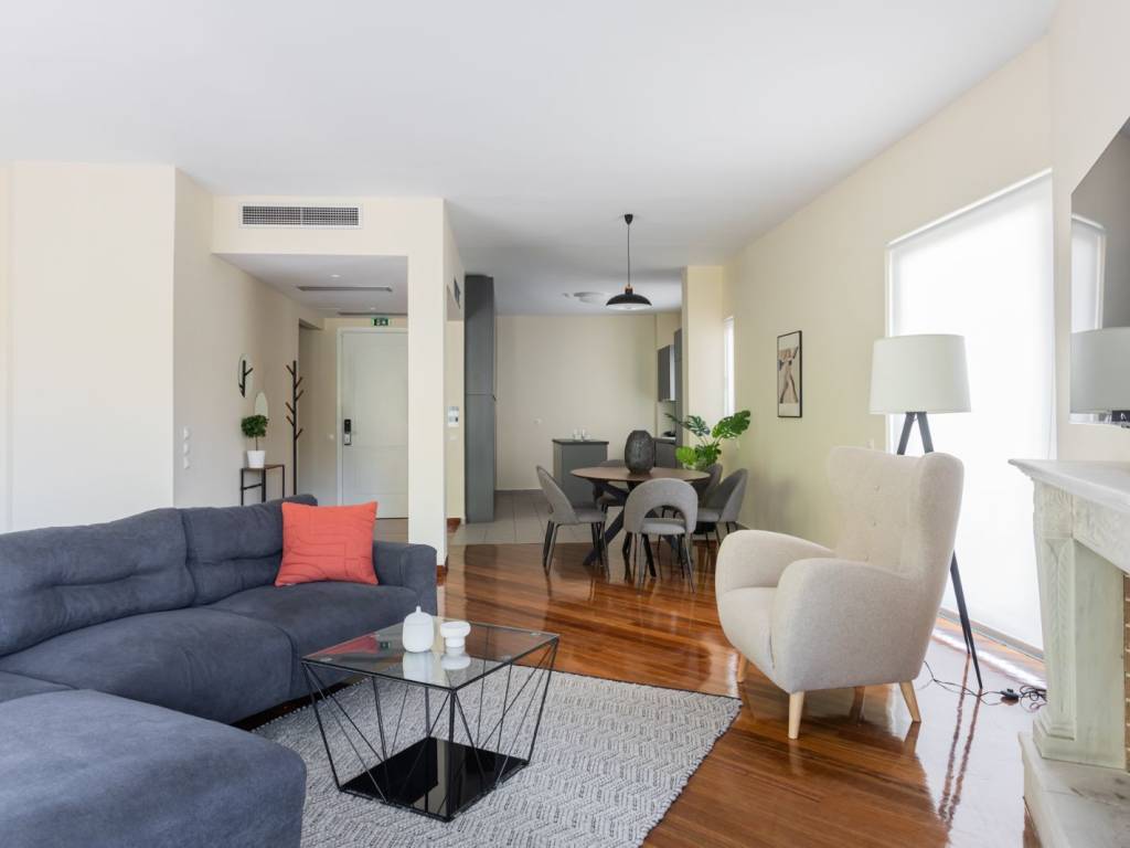 The Hill, located in a sweet spot right below Lycabettus, offers fully equipped and recently renovated serviced apartments leaving you worry-free to explore every corner of the city’s jewels. Enjoy the lovely weather with a cup of coffee and relax on the balcony! Take a break to refuel and let your senses guide you through the countless cafes and restaurants of the buzzing neighborhood of Kolonaki right around the corner! The space This stylishly renovated apartment on the 4th floor of the Hill building, features one spacious separate bedroom with queen-sized bed, bathroom with washing machine & dryer, a fully equipped open-plan kitchen and living room with a dining area. The Hill building also includes gym and a rooftop with breath-taking unobstructed views of the whole Attica basin, perfect for those magical summer sunsets. The apartment can accommodate up to 6 guests.