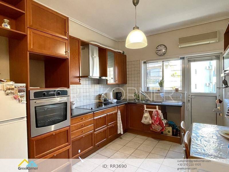 Halandri, Agia Varvara - Floor Apartment 127sqm unfurnished, bedrooms 3, levels 1, 2nd, penthouse, renovated, year built 1980, renovation year 2019, energy class B, living room, kitchen, 2 bathrooms, heating type: autonomous (oil), air condition, quiet, dual aspect apartment, luminous, unobstructed view view, frontage, painted, electric roller shutters, solar heater, boiler, balconies, tents, elevator, loft storage, aluminum frames, double glazed windows, wood floors, separate kitchen, secure door, alarm, residential zone, access from asphalt.