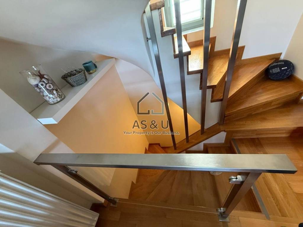 The maisonette includes a Buderus oil furnace with a stainless-steel flue, hot water via a triple system of boiler, electric heater and a solar water heater. Air conditioning units installed. It also features aluminum window frames with double glazing (heavy-duty type), insect screens, security bars on the basement and ground-floor windows, an alarm system, and two indoor parking spaces. Energy class: D.