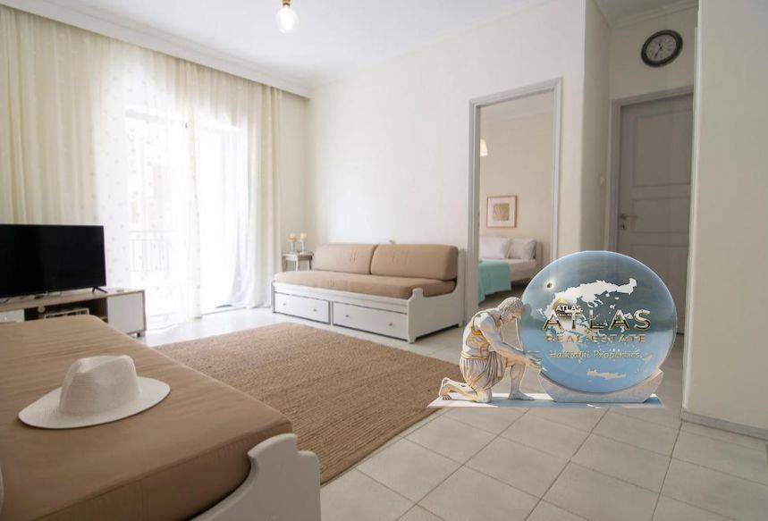 Apartment For sale in Moudania - Nea Potidaia. The Apartment is 64 sq.m.. It consists of: 2 bedrooms, 1 bathrooms, 1 kitchens, 1 living rooms. The property was built in 1990. Its heating is Personal with Electricity, it has Alluminum frames, the energy certificate is: B and its floors are Tiles, it has Sea view. Price: €160.000. ATLAS Real Estate Halkidiki Properties, contact phone: 6976628757, email: atlashalkidiki@gmail.com, website: