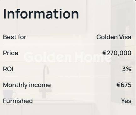 The apartment is furnished with carefully selected pieces that reflect both function and design. Every item was chosen to create a warm, cohesive living space. The furniture combines clean lines, natural textures, and practical comfort, enhancing both everyday living and visual harmony. UNIT 4 Investor Benefits Fast Process From decision to Golden Visa application in as little as 1 month. Transparent Product Clear understanding of yields and profitability in the context of the whole market. Delay compensation If construction is late, we cover the lost rental income. Warranty Post-construction completion work and materials guarantee for each apartment. 100% legally verified Full compliance and risk-free ownership. High-quality finishes & furnishing Clientscan experience it first-hand during viewings in Athens, with complimentary stay and no obligation to buy. Full Turnkey Service (if needed) Property acquisition / Accommodation in Athens / Golden Visa application support / Property management / Tax handling during ownership. For Sale, apartment, Full Bathrooms: 1, Living Area: 49 Sqm, Rooms: 1, Year Built: 1991, Student Home, Air Conditioning, Furnished, Internal Stairs, Secure Door, Floor Number: Ground Floor, Facade, Pets Allowed, Satellite Receiver, Renovated, Painted, Kitchens: 1, Joinery: Aluminium, Floor Type: Ceramic Tiles, Lot Size: 700 Sqm, New Development, Heating Controller: Autonomous, Heating Medium: Current, Road Type: Asphalt, Zoning: Residential, Investment, Energy Class: A, Orientation: E, Current: Single Phase, Renovation Year: 2026, Distance Sea: 2000