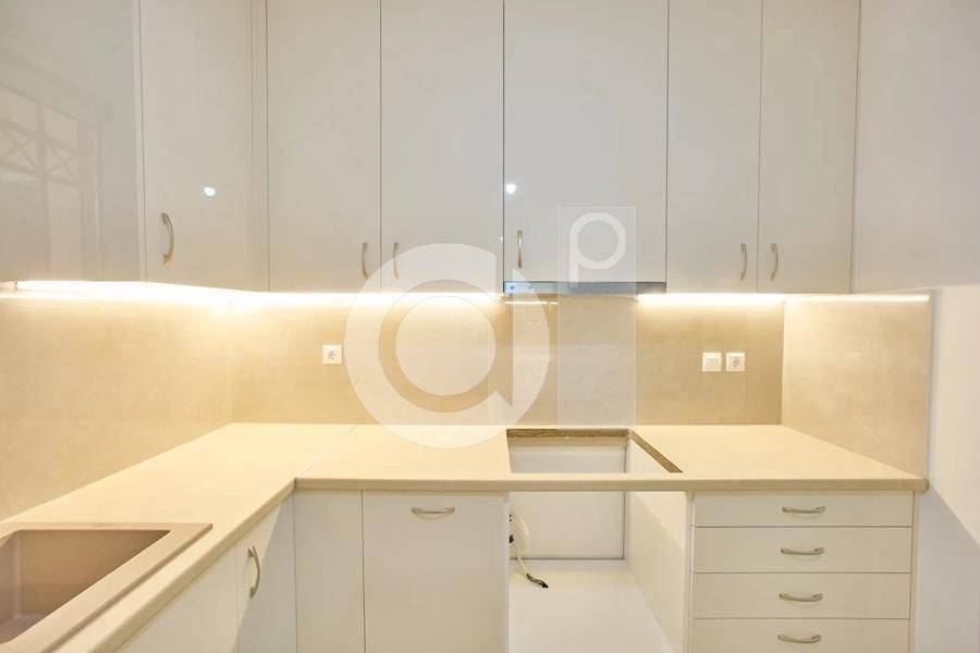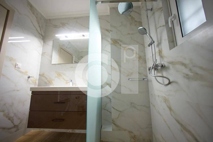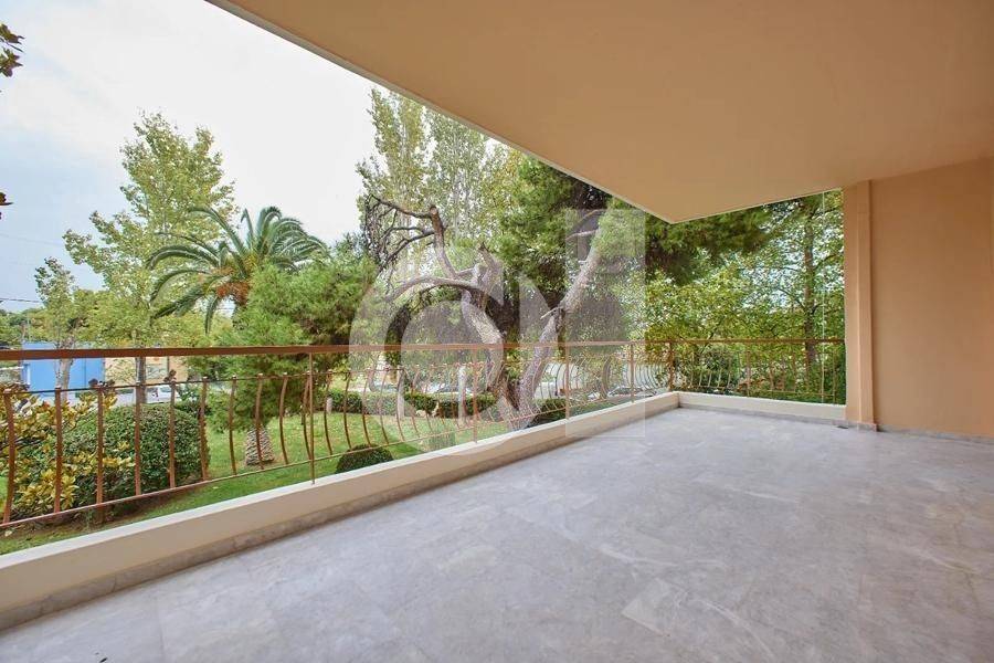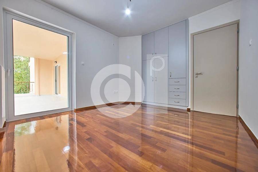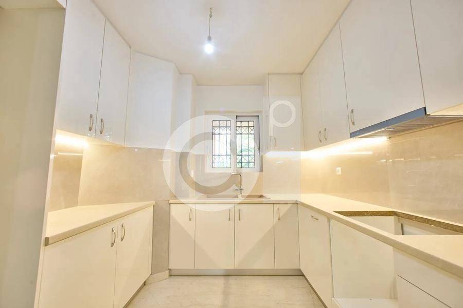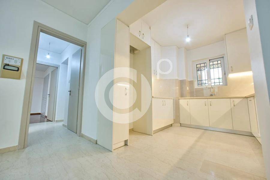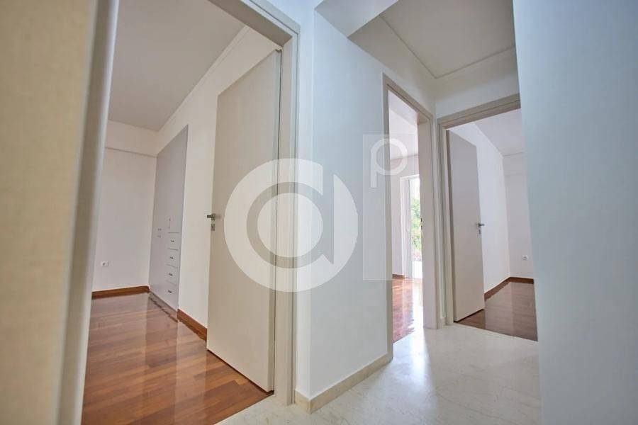 Marousi, Paradisos - Apartment 122sqm bedrooms 3, levels 1, 1st (122sqm), renovated, year built 1990, renovation year 2025, energy class C, living room, kitchen, bathroom, wc, heating type: autonomous (natural gas), parking covered, quiet, dual aspect apartment, luminous, corner, unobstructed view view, frontage, painted, storage space, balconies, large balconies, elevator, garden, aluminum frames, double glazed windows, wood & marble floors, three phase electricity, night electricity discount rate, secure door, pets allowed, within city plan, residential zone, access from asphalt.
