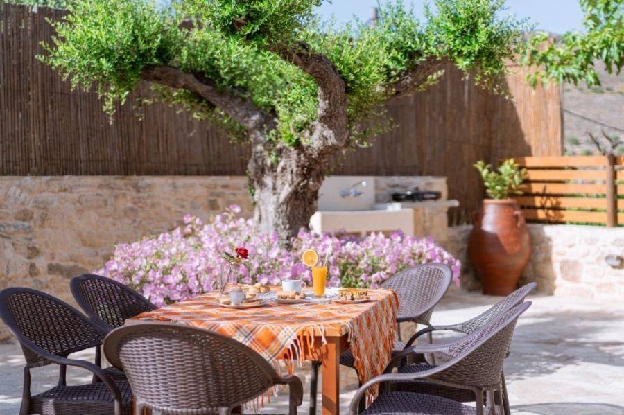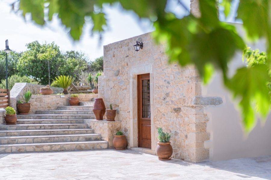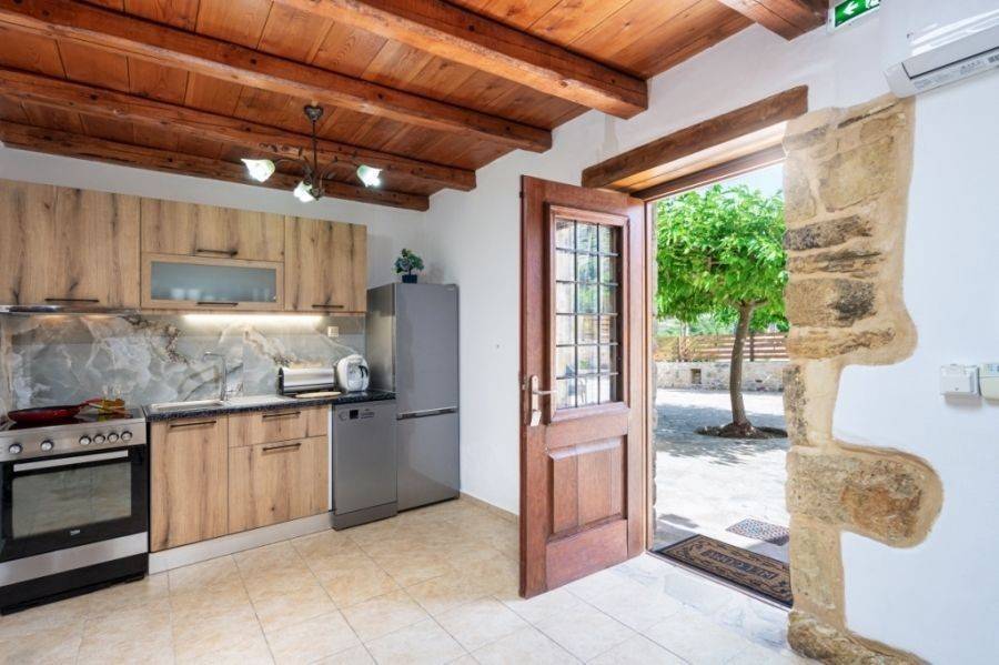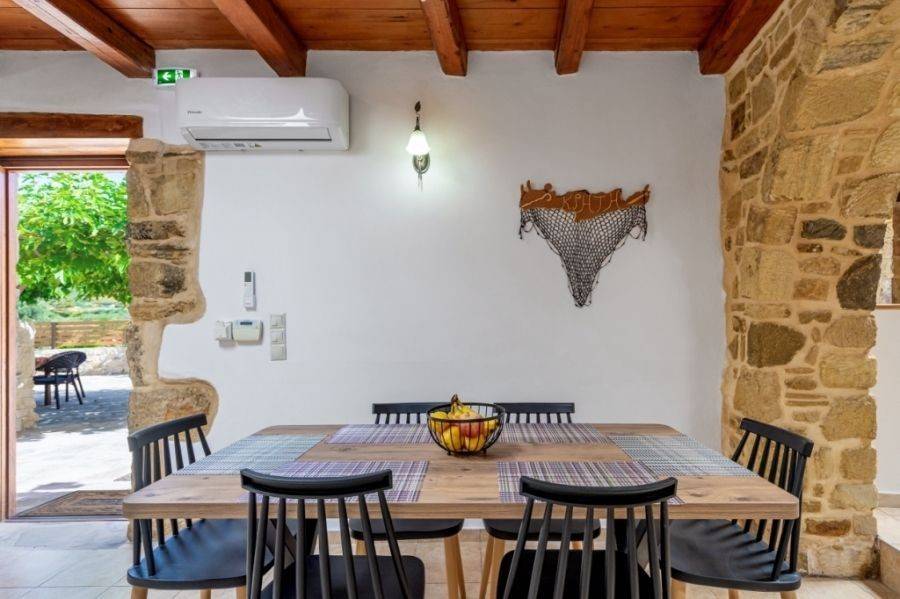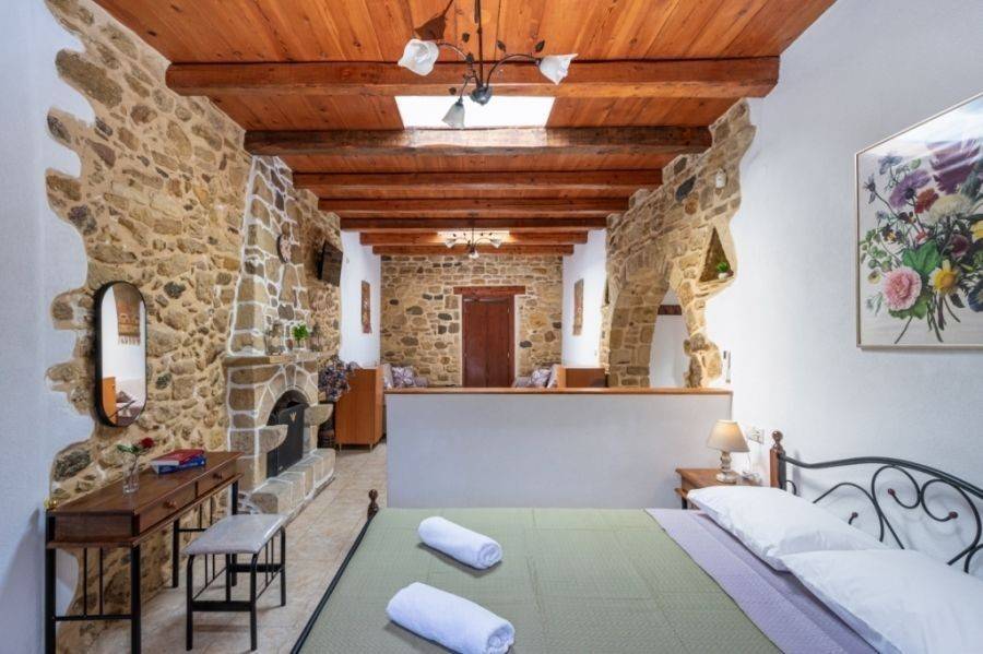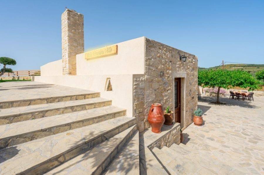 A 115 m² stone-built villa is available for sale within a traditional village near Sitia. The property is set on a 500 m² plot , just 22 km from Sitia town and airport and 12 km from the sea. Additionally, there is an adjacent 600 m² plot with four olive trees, currently used as a parking area. This remarkable residence was built in 2008 and renovated in 2023, retaining its traditional architectural charm with stone arches, exposed stone walls, and wooden ceilings, creating a warm and authentic atmosphere .Upon entering the villa, there is an open-plan kitchen and dining area. Opposite the main entrance, a stone arch leads to a bedroom with an en-suite bathroom. To the left of the entrance, the space opens into a living room with a fireplace, a bedroom, and a bathroom. The surrounding area is beautifully landscaped with various trees, offering views of the countryside and mountains. This property combines natural beauty and tranquility, making it an ideal choice for a permanent residence or holiday home.