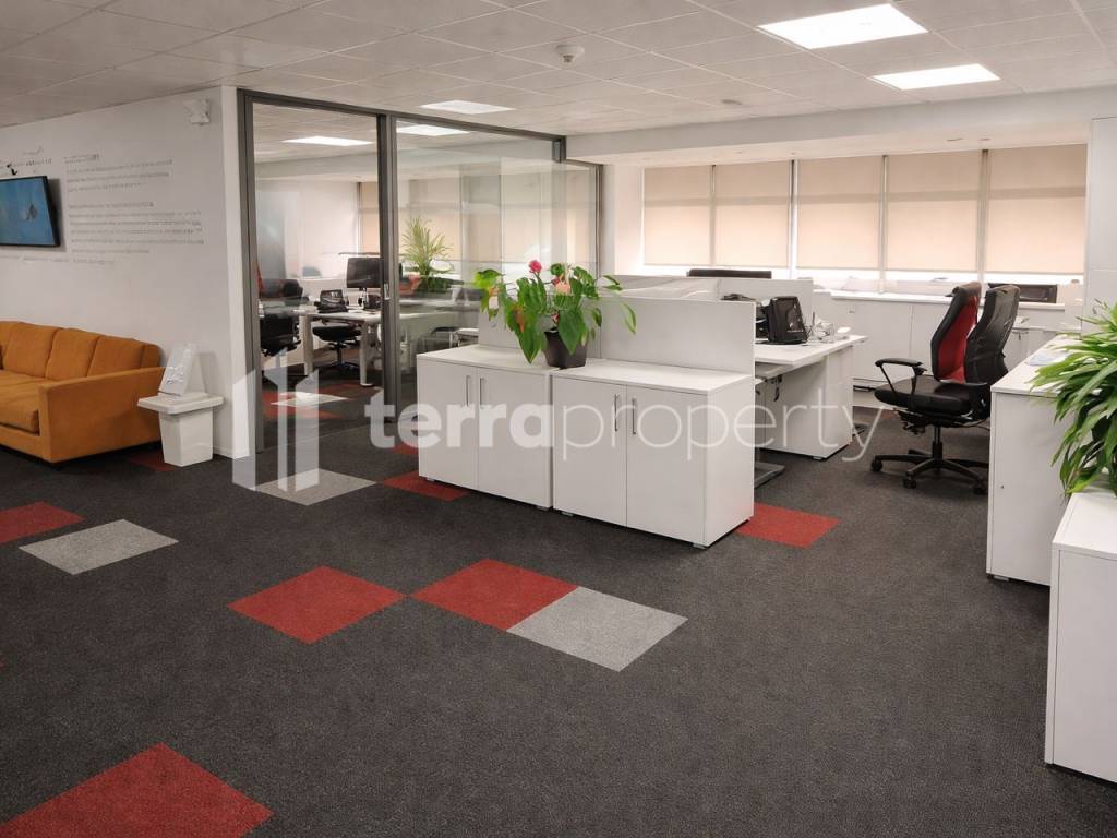 Στην Καλλιθέα προσφέρεται προς ενοικίαση σύγχρονο γραφείο συνολικής επιφάνειας 732 τ.μ, σε κτήριο κατασκευής 2000, σε σημείο μεγάλης εμπορικής αξίας. Το ακίνητο είναι προσόψεως, με άπλετο φυσικό φωτισμό και απεριόριστη θέα, συμπεριλαμβανομένης θέας θάλασσα, ενισχύοντας την εταιρική εικόνα και την ποιότητα του εργασιακού περιβάλλοντος. Η εσωτερική οργάνωση υποστηρίζεται από γυάλινα κινητά χωρίσματα, επιτρέποντας ευέλικτη διαμόρφωση χώρων ανάλογα με τις ανάγκες (open plan, επιμέρους γραφεία, ζώνες συνεργασίας). Περιλαμβάνονται reception και meeting room, κατάλληλα για υποδοχή επισκεπτών και επαγγελματικές συναντήσεις. Υπάρχει 1 κουζίνα για την εξυπηρέτηση του προσωπικού. Οι τεχνικές και ηλεκτρολογικές εγκαταστάσεις είναι υψηλών προδιαγραφών: δομημένη καλωδίωση cat6, δίκτυο οπτικής ίνας, σημεία πρόσβασης Wi‑Fi, server room, UPS και γεννήτρια για αυξημένη επιχειρησιακή συνέχεια. Επιπλέον, διαθέτει σύστημα διαχείρισης κτηρίου (BMS), τριφασικό ρεύμα, φωτισμό LED και συστήματα/συσκευές χαμηλής κατανάλωσης ενέργειας, συμβάλλοντας στη συνολική αποδοτικότητα (Ενεργειακή κλάση Β).