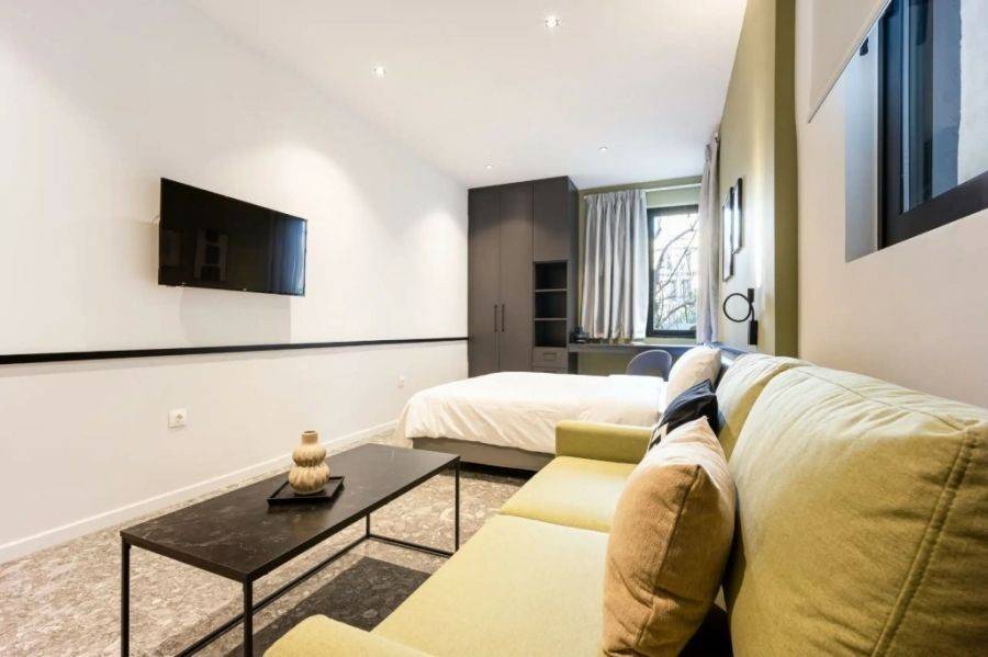 Athens, Kypseli-Platia Kypselis, Small Studio For Rent, 30 sq.m., In Plot 200 sq.m., Property Status: Refurbished, 1 Level(s), 1 Bedrooms 1 Bathroom(s), View: Unlimited, Building Year: 1970, Energy Certificate: A, Type of door frames: Aluminum, Features: Elevator, Security door, Electric Appliances, Double Glazed Windows, Balconies, Metro, Furnished, Luxury, Airy, Roadside, Bright, AirConditioning, Painted, Renovated, Short Term Lease, Price: 520€. RealView, Tel: 6972454484, email: irinilomi@gmail.com