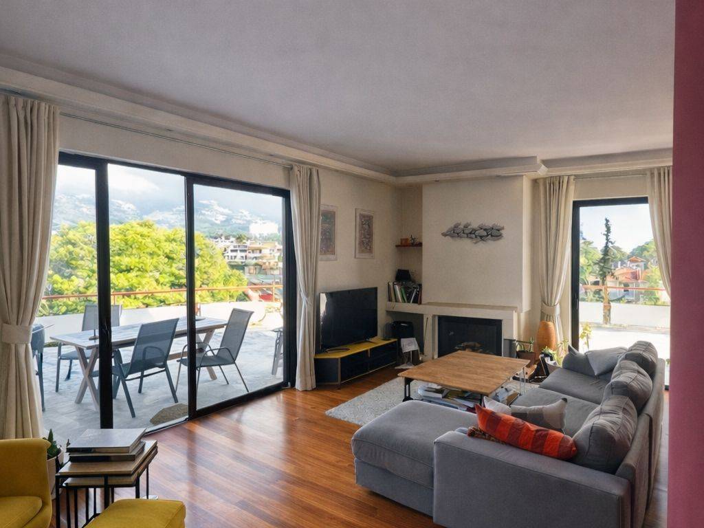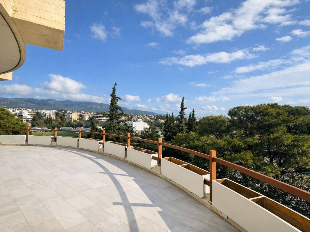 Luxury Fully Renovated 5th-Floor Penthouse – 110 sqm | Kifisia (Zirineio) In a prime location in Kifisia (Zirineio), on Kifisias Avenue and adjacent to Syngrou Grove and the Zirineio Sports Center, this luxury, fully renovated 5th-floor penthouse is offered for rent, set within a green and tranquil environment and enjoying stunning panoramic views stretching from Mount Penteli all the way to Piraeus. Available starting ***/*******.Property Features: 110 sqm 2 Bedrooms (including 1 master bedroom) 2 Bathrooms Open-plan kitchen, fully equipped with electrical appliances Large wrap-around terraces (approx. 150 sqm) with panoramic views Oak hardwood floors Aluminum Frames Fireplace Air conditioning (A/C) Security entrance door Storage room 2 underground parking spaces Bright interiors with generous openings and natural light Excellent condition with a refined, luxury aesthetic Location Highlights: Quiet, green residential setting Adjacent to parkland, sports facilities, and key infrastructure All amenities within walking distance (shops, public transport, services) Rental Price: €2,200 per month An ideal residence for those seeking quality of life, comfort, and a prestigious address in the heart of Kifisia. 6940 775 809 private owner