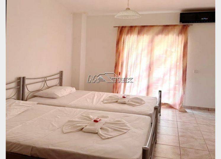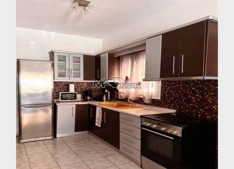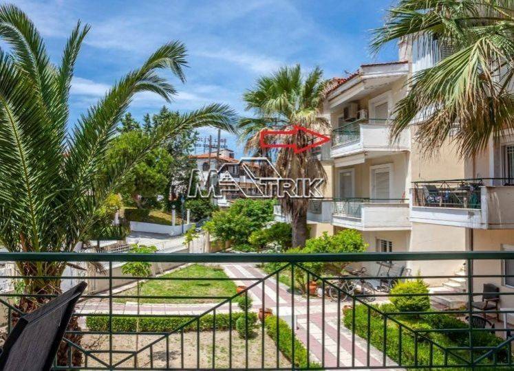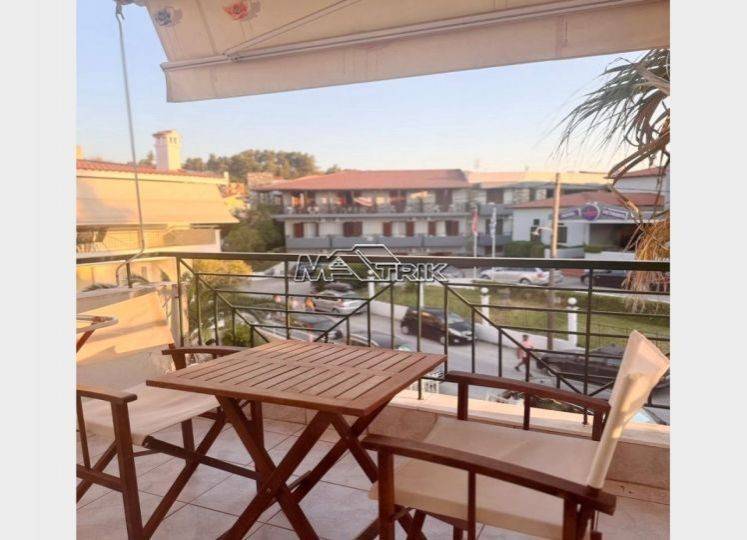 Chalkidiki, Pefkochori, first-second floor maisonette, 78 sqm in a residential complex. It consists of two bedrooms, a kitchen-living room, a bathroom and a wc. it has aluminum window frames with double glazing, recoil and nets, tiled floor, armorized door, fireplace, three a/c, balcony on each floor which have awnings, storage, as well as it is fully furnished and equipped with all electrical appliances. it is extremely bright and airy, it is located very close to the local market and its distance from the sea is 400m.