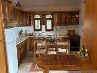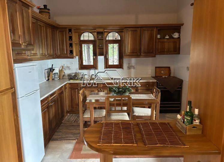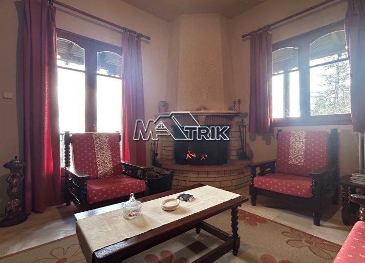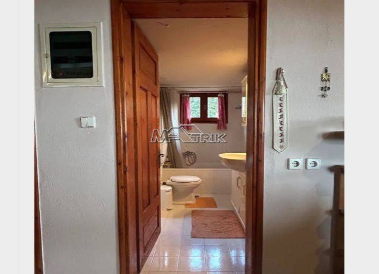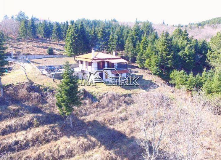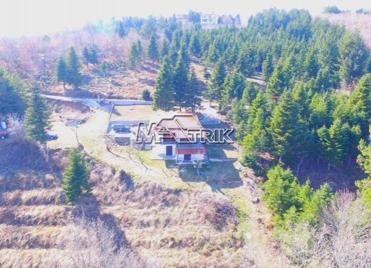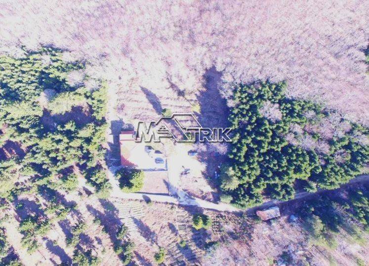 Chalkidiki, Taxiarchis, detached house of 100 sqm on a plot of total area of 4200 sqm. It consists of two independent ground floor apartments of 30 sqm and one first floor apartment of 70 sqm. The ground floor consists of one bedroom, living room -kitchen and a wc and on the first floor two bedrooms, living room -kitchen and one bathroom. It has wooden window frames, security door, marble and tiled floor, fireplace, storage room, oil heating system, solar water heater, autonomous drilling, it has a view on three sides with a large veranda, five parking spaces for exclusive use, a yard for exclusive use of approximately 4 acres, as it is fully furnished and equipped with all electrical appliances. It is located in an extremely green location surrounded by pine trees with an unobstructed view of mount Athos and its distance from the nearest beach of Gerakini is 20km. Τhere is a building permit available for another 100 sqm.