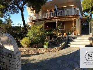 Nea Penteli, Detached house For Rent, 200 sq.m., In Plot 430 sq.m., Property Status: Amazing, Floor: Ground floor, 2 Level(s), 3 Bedrooms 2 Kitchen(s), 3 Bathroom(s), 1 WC, Heating: Autonomous - Petrol, Building Year: 1993, Energy Certificate: E, Floor type: Tiles, Type of door frames: Aluminum, Features: Security door, Security alarm, Storage room, Fireplace, Attic, Night stream, Electric Appliances, Internal Staircase, Double Glazed Windows, Balconies, BBQ, Airy, Roadside, Bright, Solar water system, Trees, Back yard (Garden), Renovated, Price: 1.200€. NEW SOLUTION REAL ESTATE, Tel: (+30) 210 9680099-(6944848414), email: info@newsolution.gr