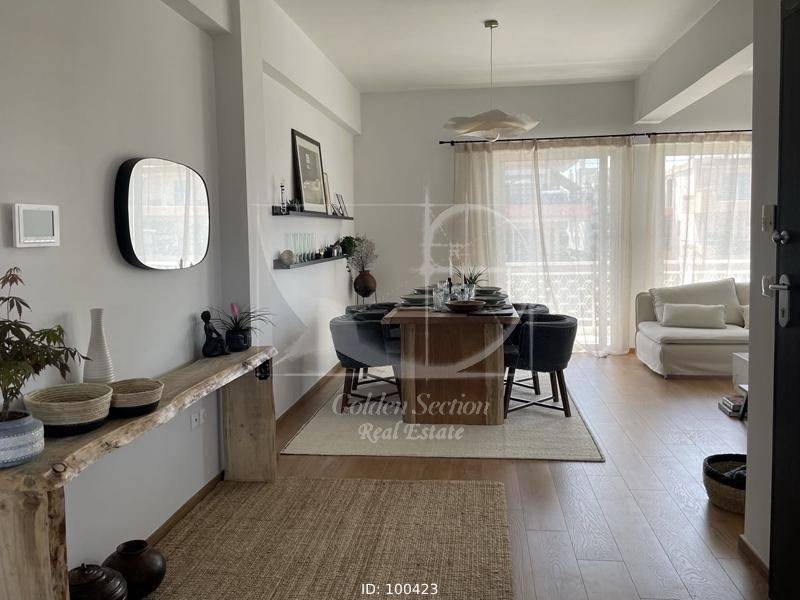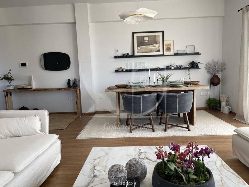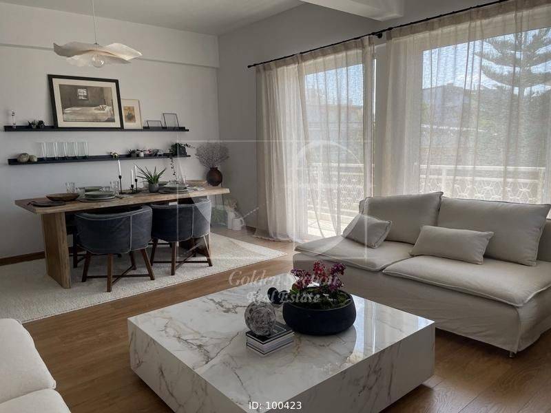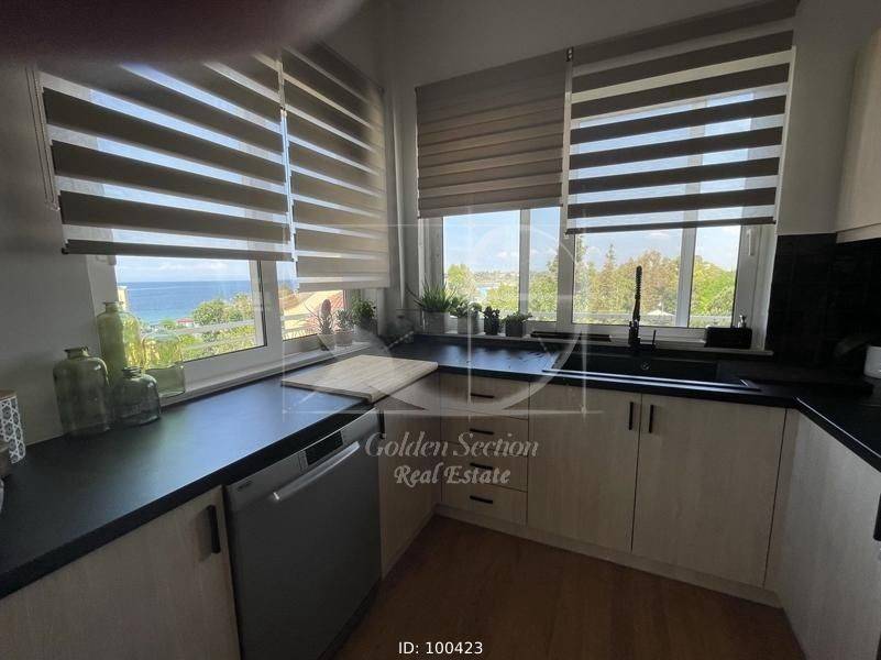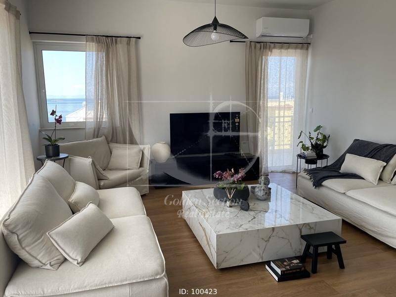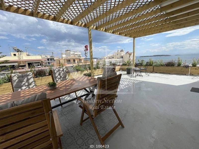 Voula - Apartment 107sqm fully furnished, bedrooms 2, levels 1, 3rd, renovated, year built 1993, renovation year 2022, energy class C, living room, kitchen, 2 bathrooms, heating type: autonomous (oil), parking open space, dual aspect apartment, luminous, sea view, frontage, painted, electric roller shutters, balconies, tents, elevator, private terrace, aluminum frames, double glazed windows, door screen, wood & tile floors, secure door, video doorbell, residential zone, close to bus stop (up to 100m), close to market (up to 100m), close to sea (up to 200m).