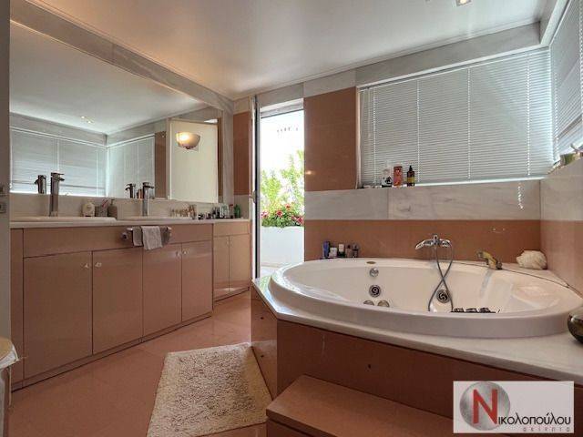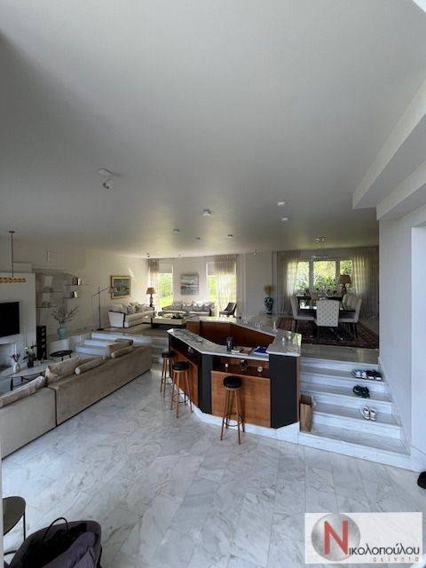 Μονοκατοικία 4ων επιπέδων, 645 τμ, (δυνατότητα ασανσέρ), αποκλειστικό κήπο, σε 1.010 τμ οικόπεδο. 1ο επίπεδο (σοφίτα): Ξενώνας με μπάνιο. 1ο επίπεδο: 4 υπνοδωμάτια (1 master), 2 μπάνια και γραφείο. Ισόγειο: 2 χώροι υποδοχής με τζάκι, υπερυψωμένη τραπεζαρία και bar, κουζίνα, W.C. και πρόσβαση στον αποκλειστικό κήπο Ημιυπόγειο: Play room με W.C., δωμάτιο υπηρεσίας με μπάνιο, laundry, βοηθητικοί /αποθηκευτικοί χώροι, κάβα και garage 2-3 θέσεις. Ενδοδαπέδια θέρμανση, διπλά τζάμια, δρύινα πατώματα και λευκά μάρμαρα.