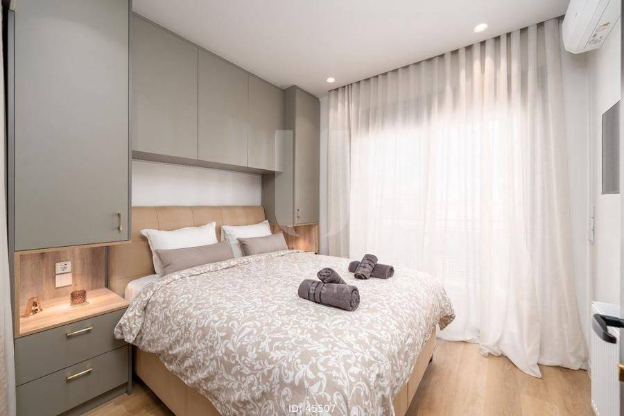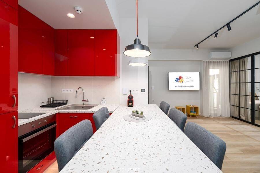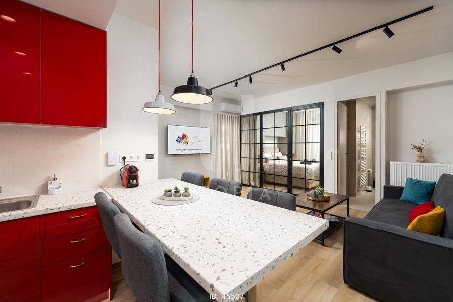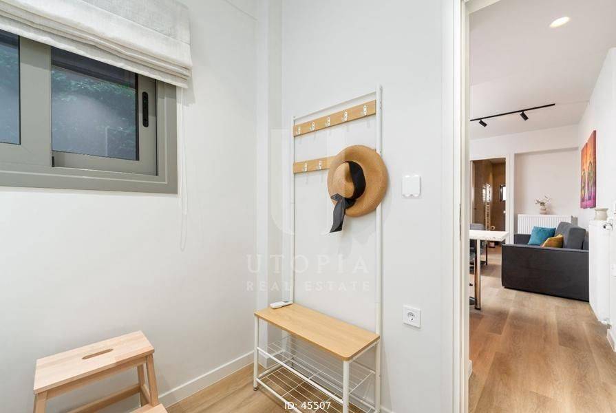Zografou, Agia Marina - Apartment 54sqm plot 198sqm, fully furnished, bedrooms 2, levels 1, 3rd, fully renovated, year built 1972, renovation year 2024, energy class C, living room, kitchen, bathroom, heating type: central (oil), air condition, quiet, dual aspect apartment, luminous, unobstructed view view, frontage, painted, electric roller shutters, solar heater, external thermal insulation, balconies, tents, elevator, built in appliances, aluminum frames, double glazed windows, laminate floors, night electricity discount rate, secure door, alarm, under floor heating, smart home, residential zone, west-southern orientation, access from asphalt, investment property, special offer, close to hospital (up to 1000m), close to metro/train (up to 500m), close to university/college (up to 500m).