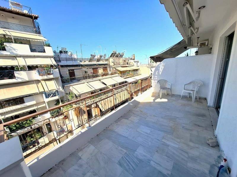 Kypseli - Apartment 79sqm bedrooms 2, levels 1, 5th (79sqm, 2 bedrooms, living room, dinning room, kitchen, bathroom), penthouse, needs renovation, year built 1989, energy class D, living room, hall, kitchen, heating type: central (natural gas), quiet, dual aspect apartment, luminous, unobstructed view view, frontage, storage space, balconies, elevator, aluminum frames, wood & marble floors, separate kitchen, office, secure door, pets allowed, residential zone, investment property, close to bus stop (up to 200m), close to school (up to 500m), close to park (up to 500m), close to market (up to 500m).