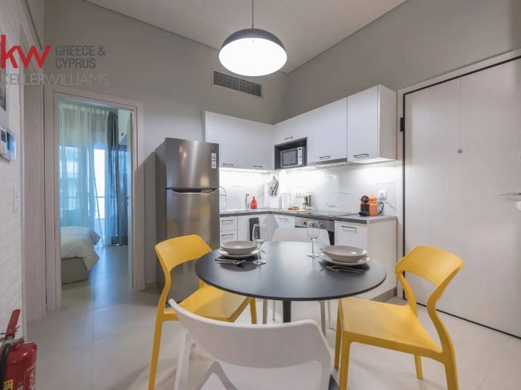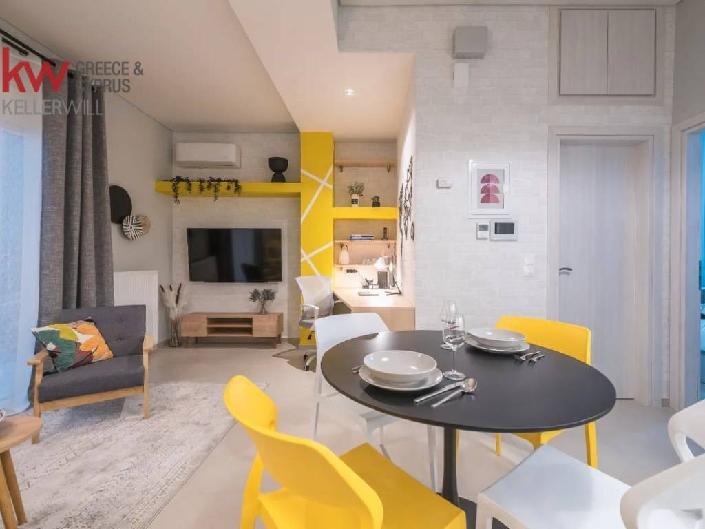 Elevated ground floor apartment of 43 sq.m., built in 2022, is available for rent in Neos Kosmos. It is in very good condition, front-facing and airy, with a view of the urban landscape. It is located in a six-story apartment building with an elevator and 10 apartments in total and consists of an open-plan living room - dining room - kitchen, 1 bedroom, bathroom (with shower), front balcony of 15 sq.m. and rear balcony of 17 sq.m. and an open parking space. It has aluminum frames with double glazing, screens, 2 air conditioning units, solar water heater, security door, electric roller shutters, video door entry system, cameras, a 3 sq.m. loft, electrical appliances (refrigerator, stove, washer - dryer, TV) and fiber optic installation. It is available furnished as shown in the photos. The average monthly utilities are approximately 25 euros. Only a cat is allowed as a pet and this after discussion. It is located in a quiet neighborhood close to transportation, parks, super market, city center and shopping areas, while it is only 180 m. from the Neos Kosmos Metro Station (3' walk) 650 m. from the Agios Ioannis Metro Station (9' walk). For more information: KW Solutions Group, tel.: 2130414087, email: info@solutionsgroup.gr. It is necessary for the indication of the property to present the ID card or passport of ALL those who wish to see the property, before signing (by all) the relevant Indication Order. Finally, ask our Consultant about the Renovation possibilities and the advantages offered to you by our group company, “Resolutions - Renovations”. See more on our main site: https://solutionsgroup.gr/
