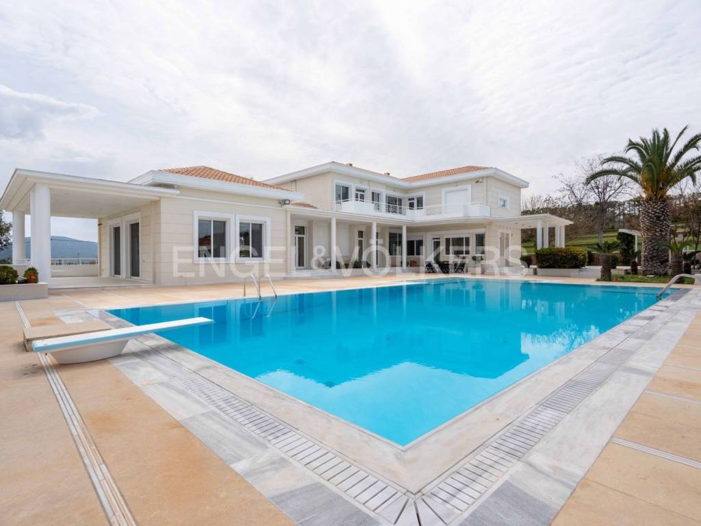 Welcome to our exclusive villa, a luxurious property 921m2 offering unparalleled comfort and elegance. This exceptional residence presents a rare opportunity to indulge in refined living away from the hustle and bustle of the city center, conveniently located a 10-min drive to the Athens Airport and just a 7-min drive away from the idyllic beaches of Porto Rafti. Spend leisurely days basking in the Mediterranean sun or exploring the vibrant local culture, all within a few min reach from this magnificent villa. Enter through the grand foyer, where luxury and elegance welcome you. The expansive ground floor, spanning 291sqm, boasts an impressive living room adorned with a variety of sitting areas and a beautiful fireplace. Designed with high-end finishes and meticulous attention to detail, this space is perfect for hosting lavish gatherings. The spacious dining area sets the stage for memorable dining experiences, while expansive windows throughout the floor offer breathtaking views of the garden and the pool. The modern kitchen, equipped with top-of-the-line appliances, and a WC completes this floor. Ascend the elegant staircase or glide effortlessly in the private elevator to the upper level, measuring 174sqm, which houses three sumptuous bedrooms, each featuring a walk-in closet and en-suite bathroom. An office and gym area provide space for work and wellness pursuits, offering a serene view of the garden. Step outside to discover your own private paradise in a plot of land of 8,141 sqm, where lush gardens, a sparkling pool, and an expansive barbecue area await. Whether you're enjoying leisurely afternoons by the poolside or hosting an event under the stars, every moment is an opportunity for indulgence and relaxation. The villa also features basketball and football courts for friendly games. There are 3 indoor parking spaces and apx 50 parking spaces outdoors so that all your guests feel comfortable when attending your events. Descend to the semi-basement level to find two independent apartments. The first, measuring 115sqm, features a spacious living area with a fireplace, a kitchen, two bedrooms with en-suite bathrooms, and a WC, perfect for accommodating guests or extended family. This thoughtfully designed space allows guests to enjoy sweeping views of the tranquil gardens below. The second apartment, measuring 91 sqm, offers an open-plan living room and kitchen area, a bedroom with a bathroom, and can be used for accommodating staff or as an office space. Rarely does an opportunity arise to own a residence of such distinction and elegance. Embrace the privilege of ownership and elevate your lifestyle to new heights with this exclusive Villa. Location: Porto Rafti is located 7 km east of Markopoulos, on the southern shores of the Southern Evia Gulf, and on the north, it borders Athens Airport. It is approximately 40 km away from the capital. The bay of Porto Rafti includes 3 islands (Rafti, Raftopoula, Leek) and coasts from Erotospilia to Avlaki. Unique Features: Porto Rafti today is one of the most famous summer resorts in Eastern Attica which offers natural beauty thanks to its beautiful beaches with crystal clear waters. The area also provides a variety of watersports activities. Also, Porto Rafti is known for its rich history as it includes the famous archeological site of Vravrona with its famous ancient temple. Porto Rafti includes a large selection of cafes and little taverns which are popular for their seafood. Lastly, the small port of Porto Rafti is a small jewel and a place which is ideal for walks by the sea. Accessibility: Access to Porto Rafti is served by Attiki Odos, the coastal boulevard and the neighboring metro stations and suburban "Koropi". Investment Potential: Due to its rich natural beauty as one of the most popular tourist resorts in Athens and its relatively close distance from Athens, Porto Rafti has become attractive to real estate investors as property prices offer a good return of investment.