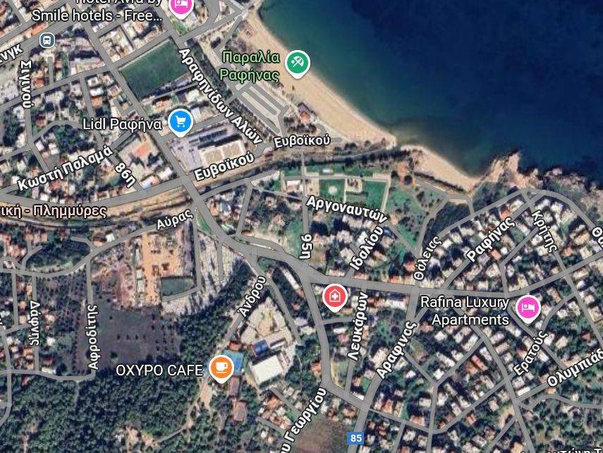Plot of land of 828 sq.m. for sale within the plan in Rafina, 7 minutes walk from the Center of Rafina, ideal for investment, tourist exploitation, compensation, developers, residence, rooms to rent or hotel. The plot is buildable, sloping, fenced, with access to electricity and water, while it has a facade of 15 meters, a building factor of 0.6, a building area of 500 sq m and a coverage factor of 0.3. There is an old two-story house of 220 sq m renovated in 2022. It is located in a residential zone with land use of pure residential, east-west orientation, just 400 meters from the sea and the beach, 600 meters from the port and the center of Rafina, 400 meters from a supermarket, and just a stone's throw from a school. It is close to transportation, a park, a square, a church, a kindergarten, a market, a shopping center, a city center, entertainment centers and restaurants. Price: €500,000