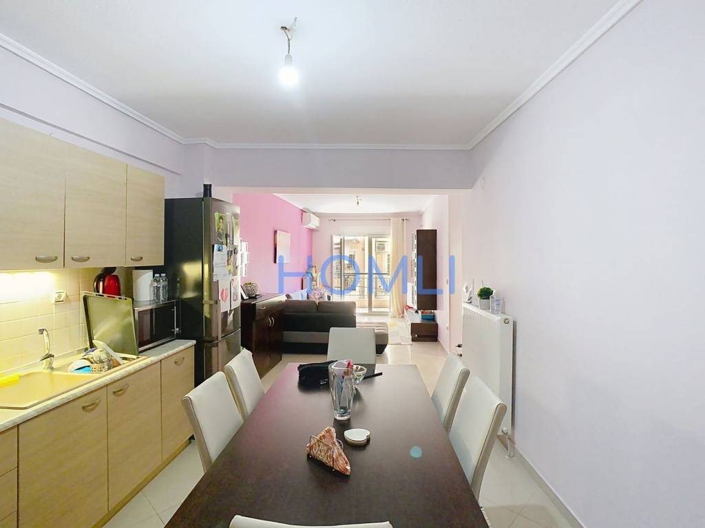 Apartment in excellent condition in Sykies. The apartment, 87 sq m, is located on the 2nd floor, with an excellent layout and bright, airy spaces. It consists of a spacious living room, two bedrooms, a bathroom and two balconies. In addition, it has a storage room, double-glazed windows, awnings, mosquito nets and air conditioning. It is located in a prime location, as it offers a quiet environment in its neighborhood, with direct access to shops, sports facilities and healthcare businesses. HOMLI, property code 23323, contact us by phone at 2104446498.