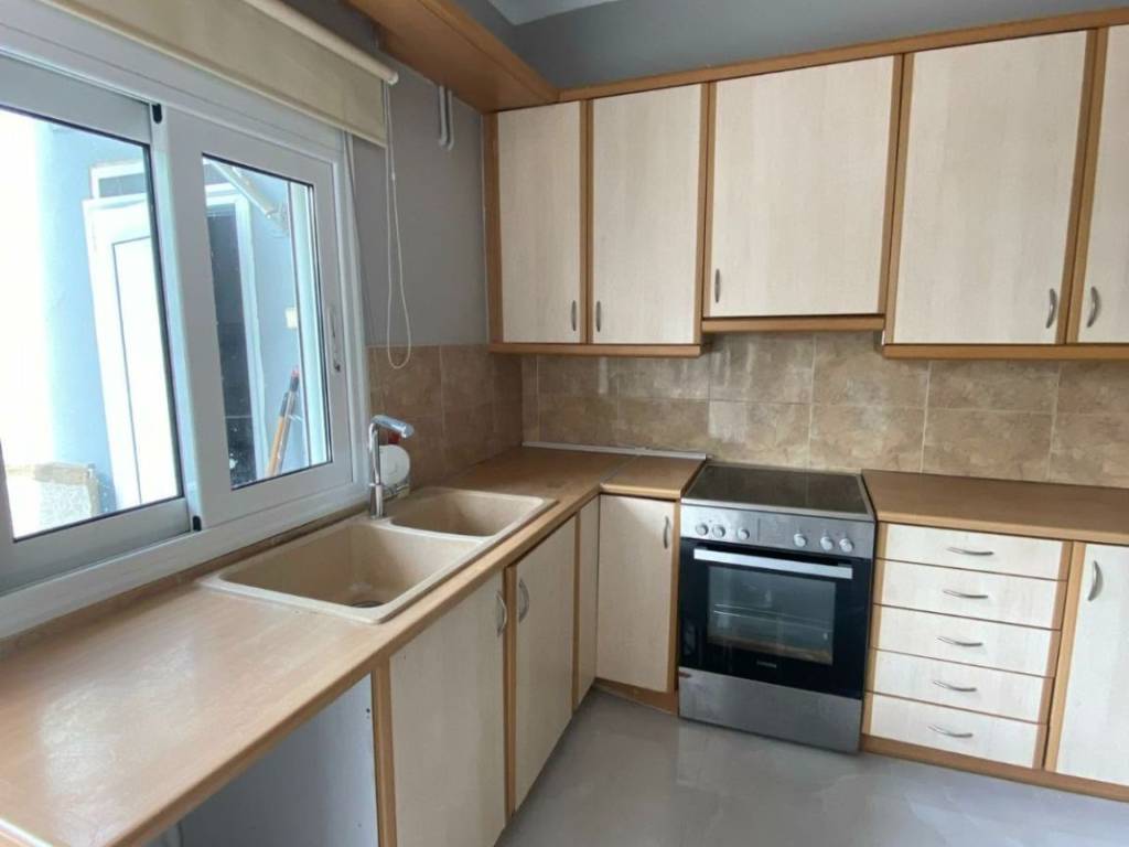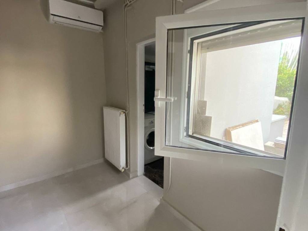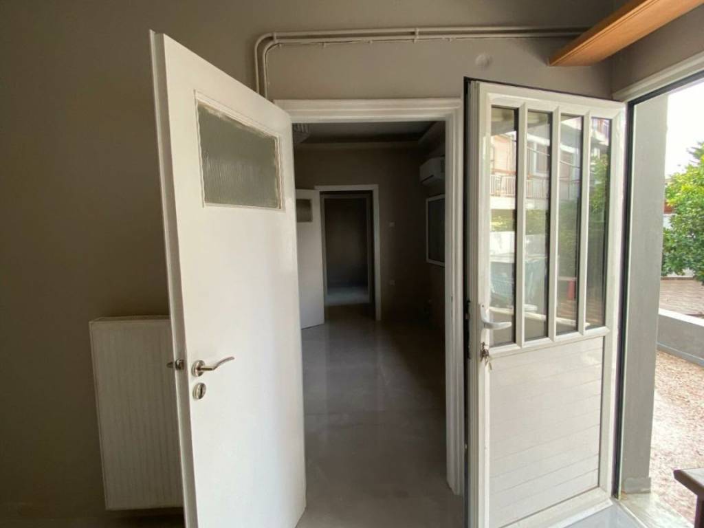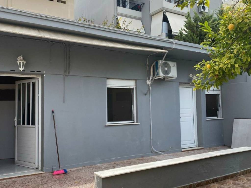 (code 22211) Glyfada, Ano Glyfada: For rent renovated Apartment 61sq.m. facade on the ground floor with autonomous oil heating. It consists of 1 bedroom, 1 kitchen, 1 living room, Garden, storage room and bathroom. It is built in 1995, painted. It is located close to public transport, market, schools and has a nice view of the garden, aluminum frames with double glazing, security door, air conditioning, energy class C, marble floors, mosquito nets. It is ideal for a couple, students or workers without monthly fees and pets are allowed.